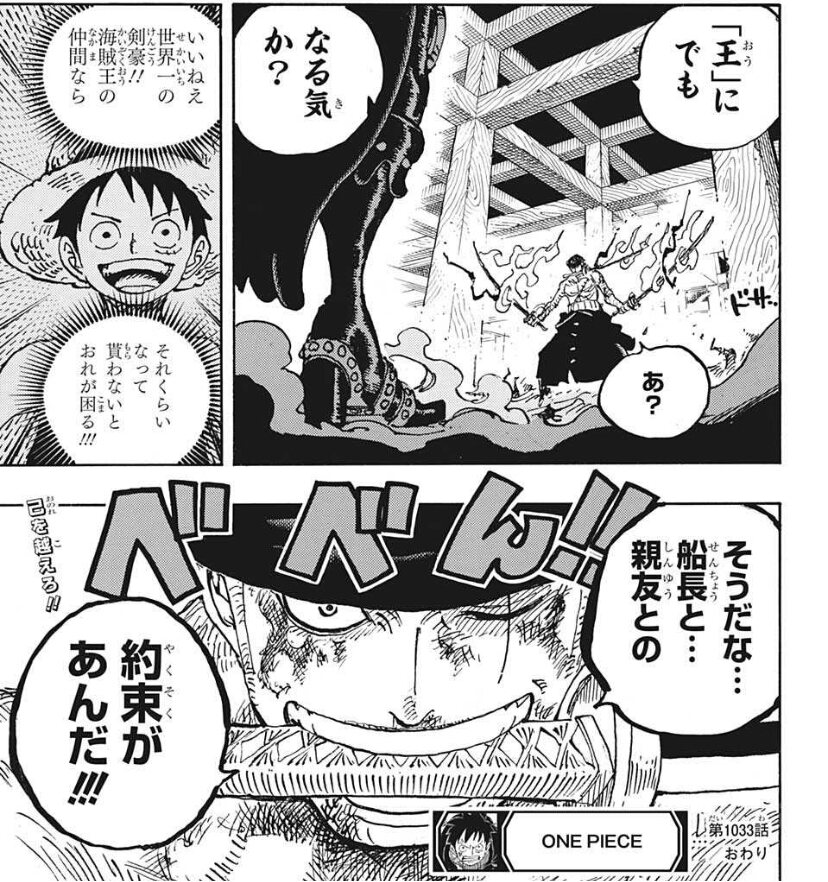 知らないと認めてる時点で上の例からは外れそうサンジも海賊王の左腕にどっちが求められるのかって女を攻撃する自分かで悩んでるしな。ゾロは海賊王の右腕としてルフィを王にするってのもより強く明確にしたしな。