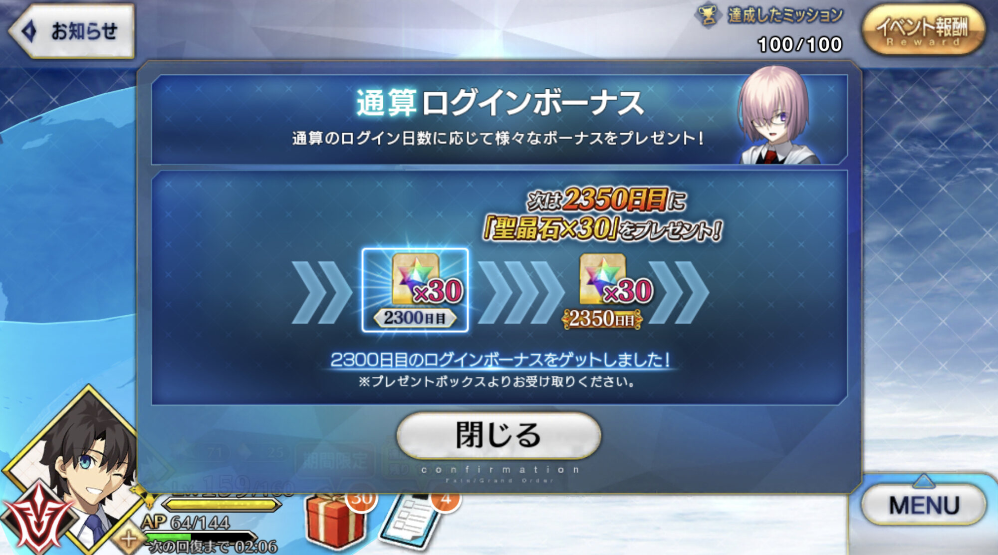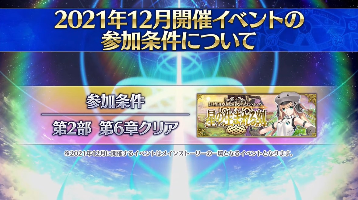 このイベントが6.5章扱いかはともかく(まぁ6.5章自体はやるのはきのこに明言されてるけど)、イマジナリを鑑みれば参加条件をもう少し下げても良い筈なので、今年は6章が長かったとはいえメイン1章しか実装されてないのを見ると、話進めるためにもブリテン切除後の時系列の可能性は普通にありえるかと