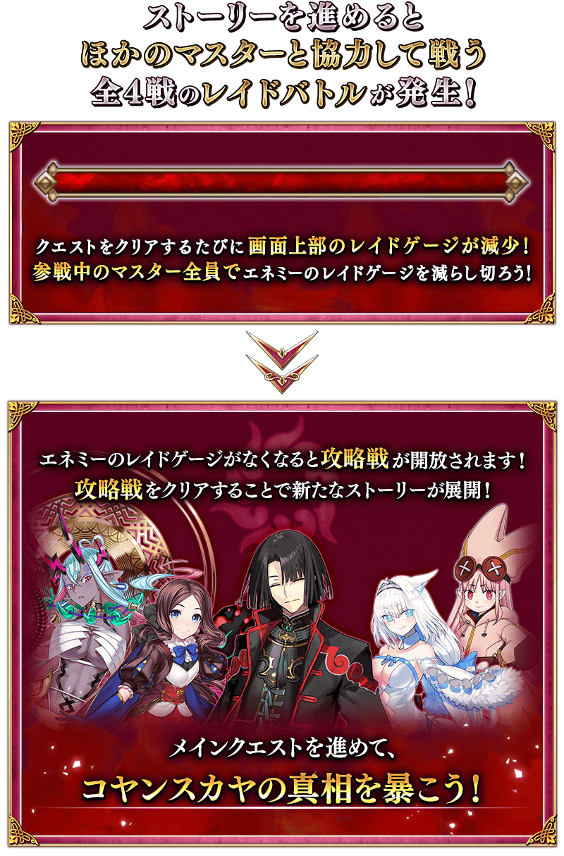 そういえば6章でコヤンが見せた尾を展開したビースト形態もそう見えなくも無いな光の点がある、7章ロゴが無い、時期的に普通のイベ形式だと年跨ぐってのがあるしレイド形式のパターンはありそうではある、尾の数みたいな前振りもあるし