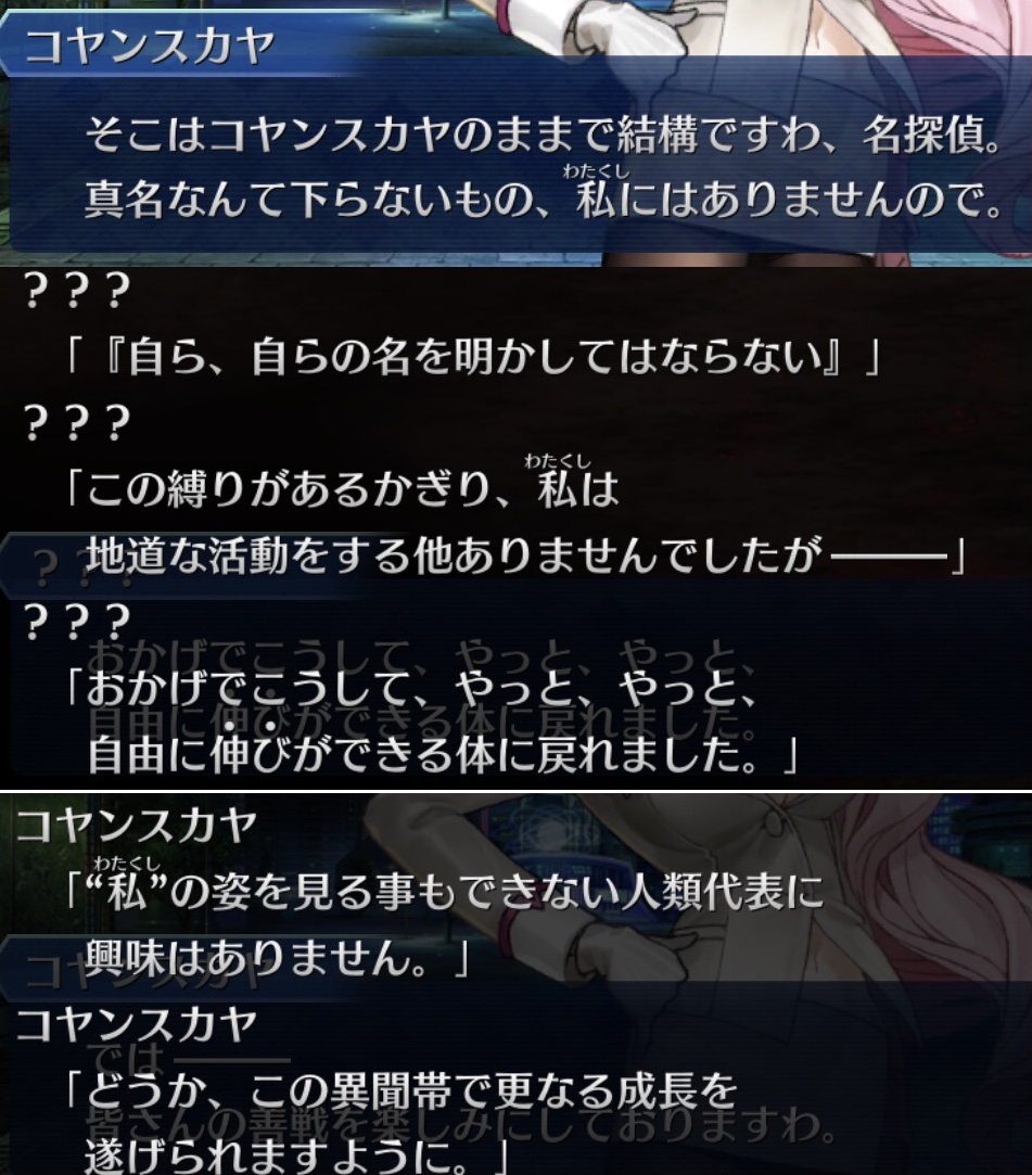 晴明とも被ってるな少なくともコヤンスカヤ自身がコヤンスカヤという存在に縛られているのは間違いないよね