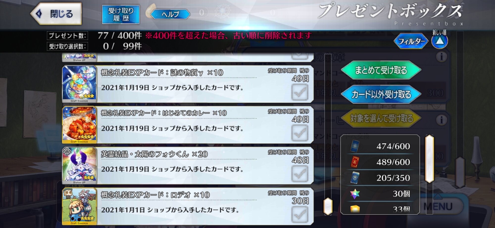 昔の人は種火やQPが溢れても、それがどうしたと周回してたのよ……