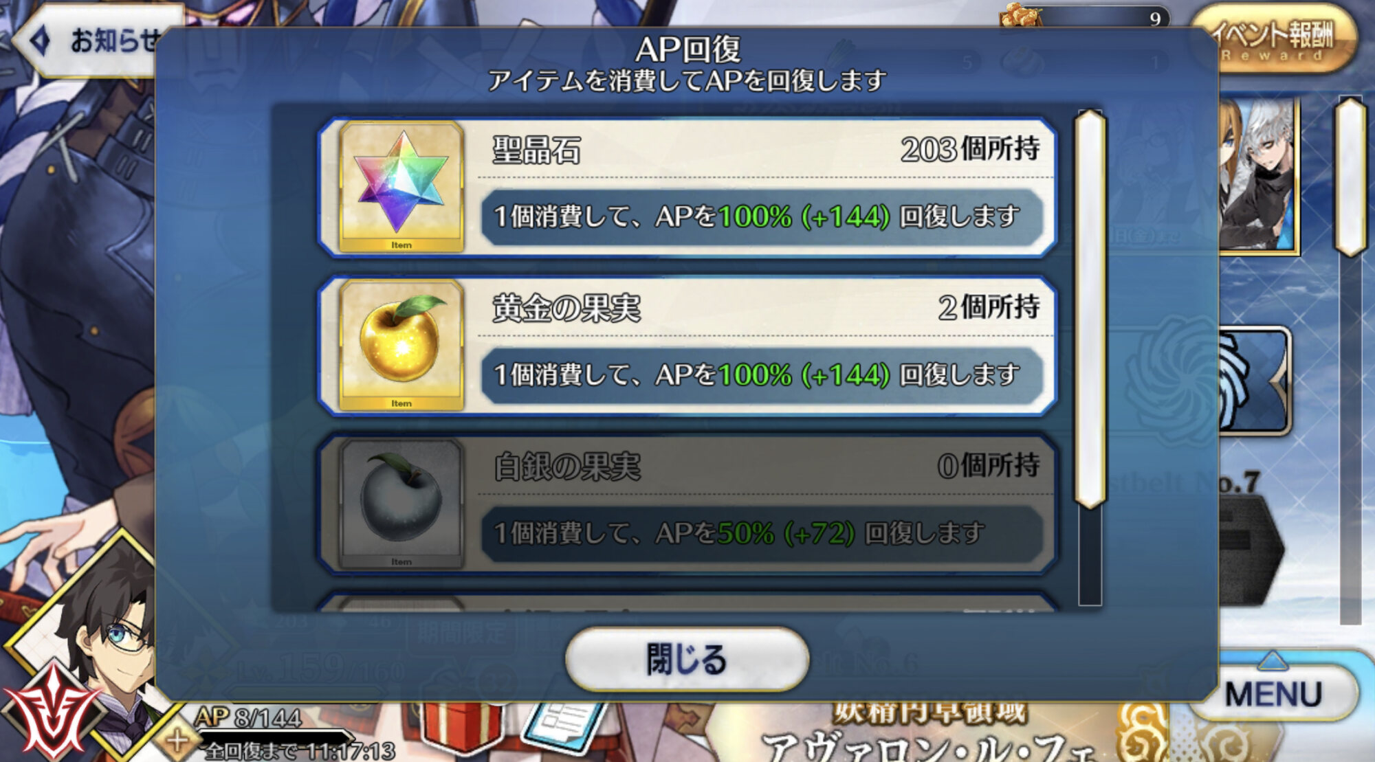金リンゴと同じくAPを100%回復するだけでなく消費することでコンティニューさえ可能とし、3つ使えば召喚までできてしまう奇跡の果実だ