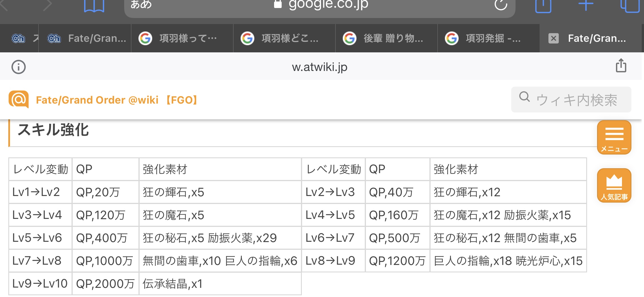 伝承結晶が沢山来たからスキル上げをしていたらQPが足らなくなってね…今は宝物庫を周回している>>930