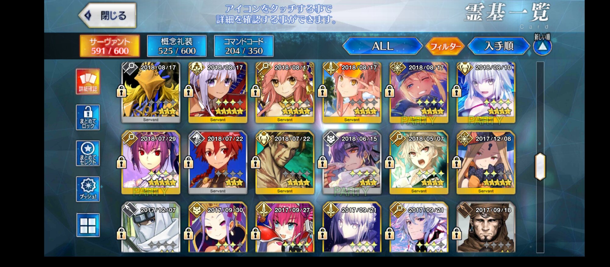 持ってる鯖の再臨とサウンド開放したらしばらくは使わないからね。