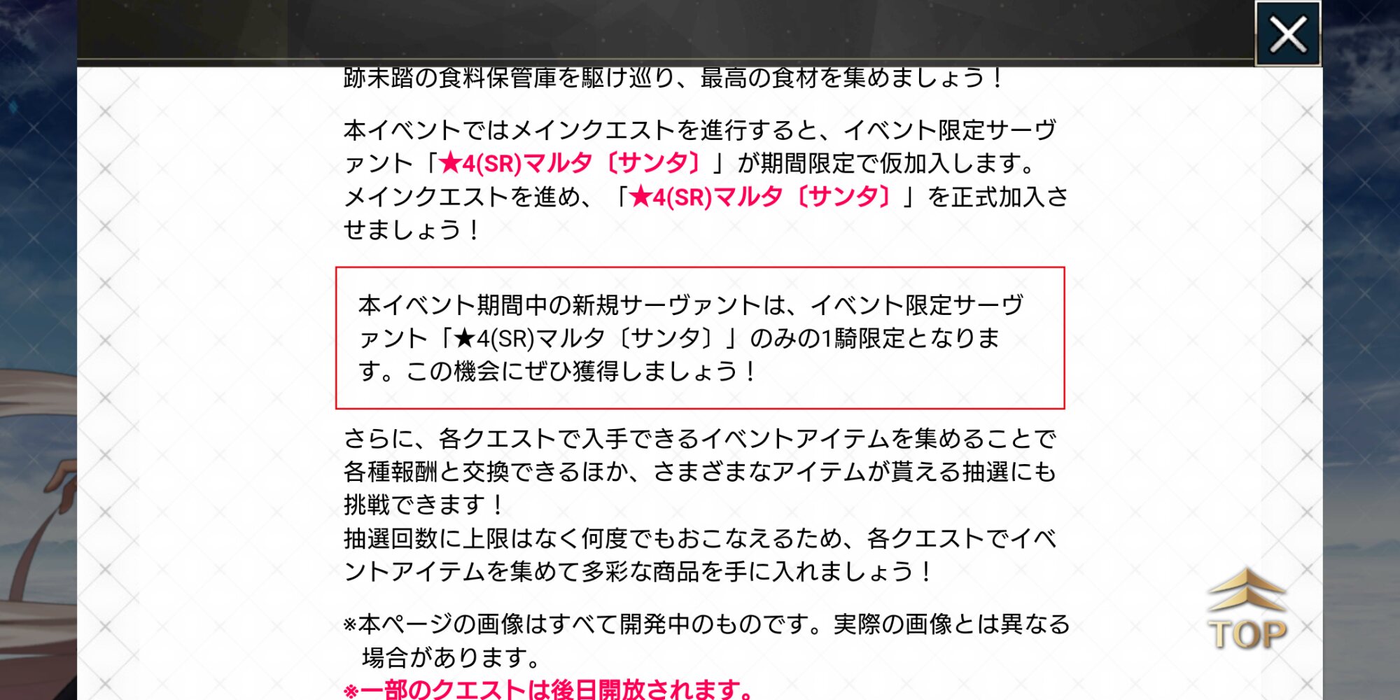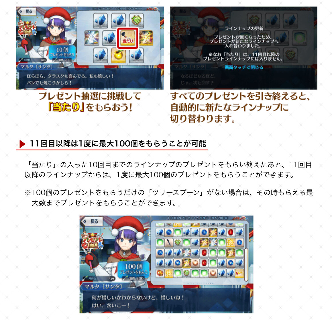 ほとんど隙間なく引かせに来るような布陣してくる運営が優しい……?去年参加できてないから復刻無しは悲しいがそれはそれとしてマルタさん嬉しい