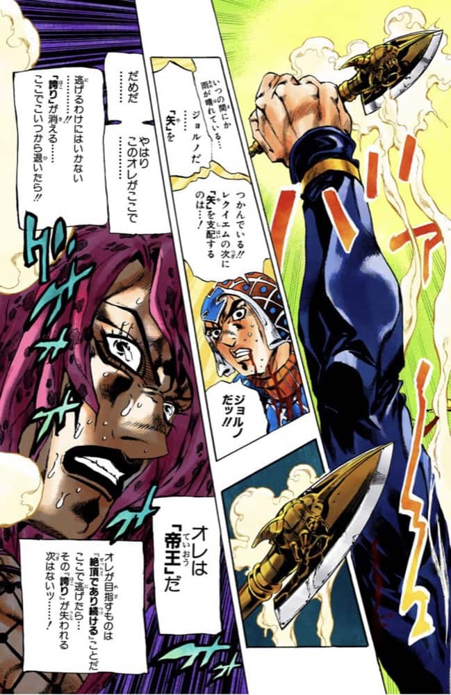 どっかの巫女さんもそうだが最初なんでジョルノのレクイエム、メイドインヘブンに反応しなかったんだろうとか思ったけどジョルノ自身を攻撃してないだけかと思ったけど、Eohの天国DIOに対応出来なかった辺り天国系のスタンド>レクイエムかもしれない。