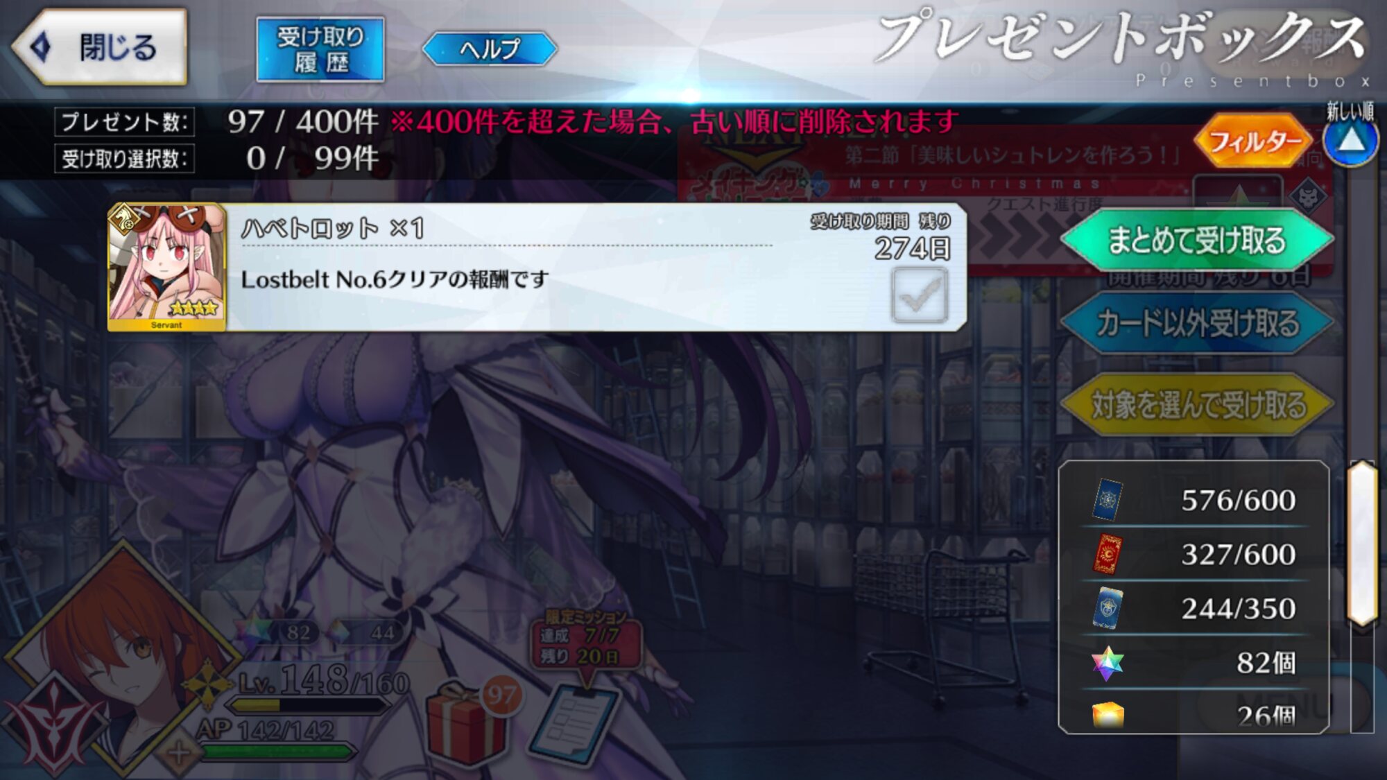 イベントだからスクショしなかったけどマスターレベル156になった