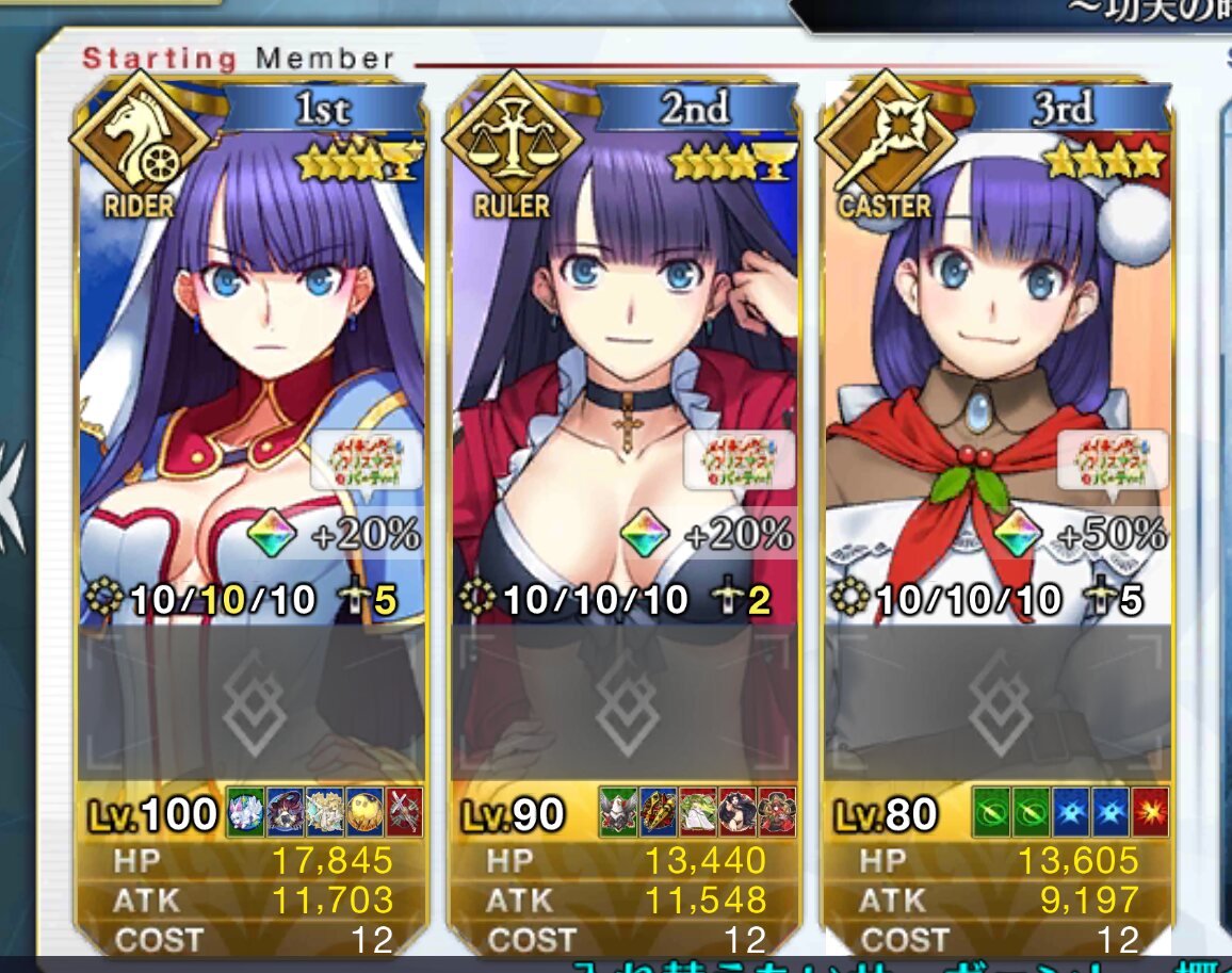 マイルームでチェックかけてみたけど3枚目が重なっててレベル100カード込みの7枚読みなら、宝具2かつ最速2.5秒達成なのでマジで無理はしない方が賢明だと思うよ。