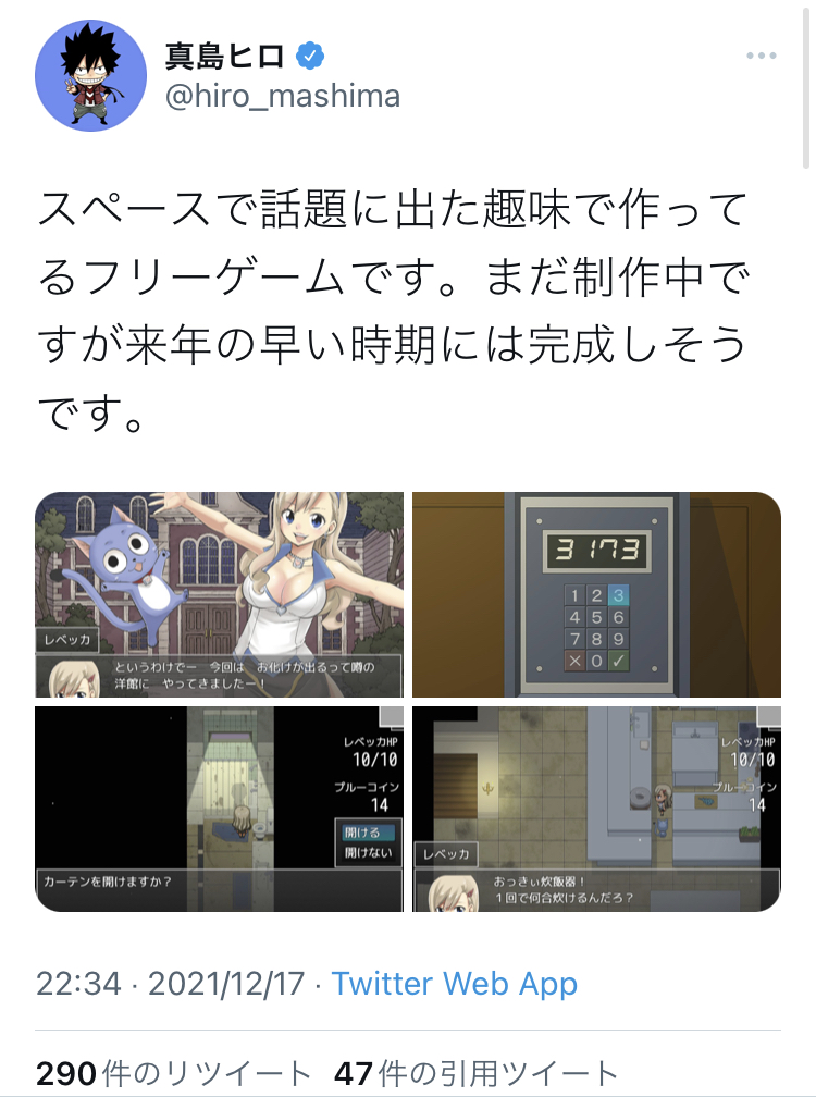 真島ヒロ「2話分まとめて描いたのを編集に見つかって掲載されたとか言われてるけどあれは真っ赤なウソ。事前に2話掲載したいって言われたから、1週につき5ページ分余計に描いて一ヶ月で1話分ストック作ってるだけ」>>897
