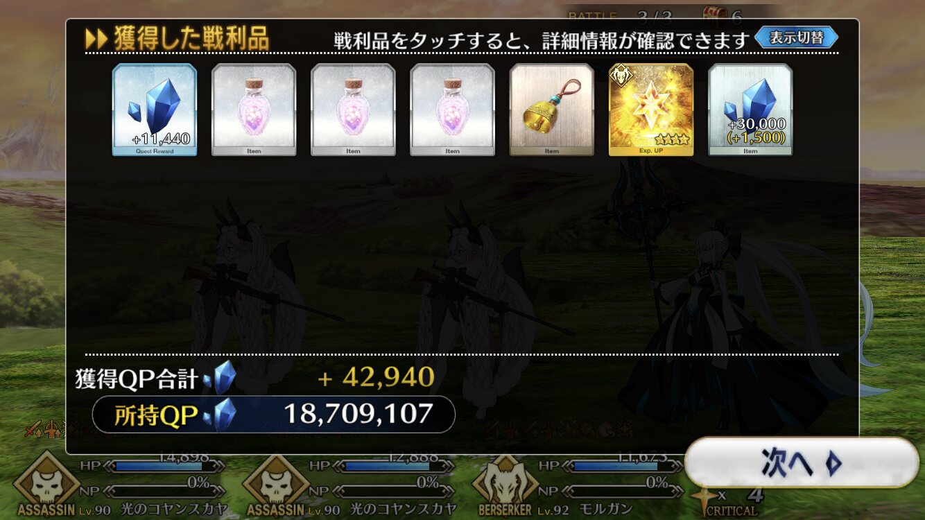 んー、金時ぶっぱもいいけど、神性あるならコヤンとオベロンでNP注いで水着ノッブもいいかなー!99ポイント貯まったけど、ティアマトママ3人目の召喚は叶いませんでした。