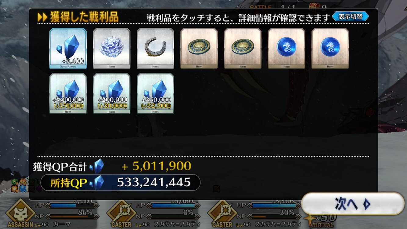 藤竜版はほぼ桃しか食わんしなレイドの試行錯誤中にチョーシこいて令呪使っちゃったから、地味にキツい。