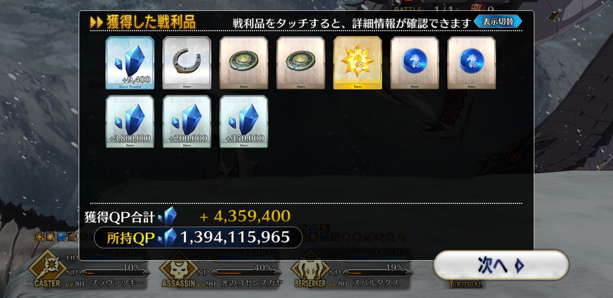 初代様か李老師。場合によってはメルトかな…。ベオウルフがS3に巨人特攻持ってるので、次に出るであろうスルト君相手もついでに頑張ってもらう予定。