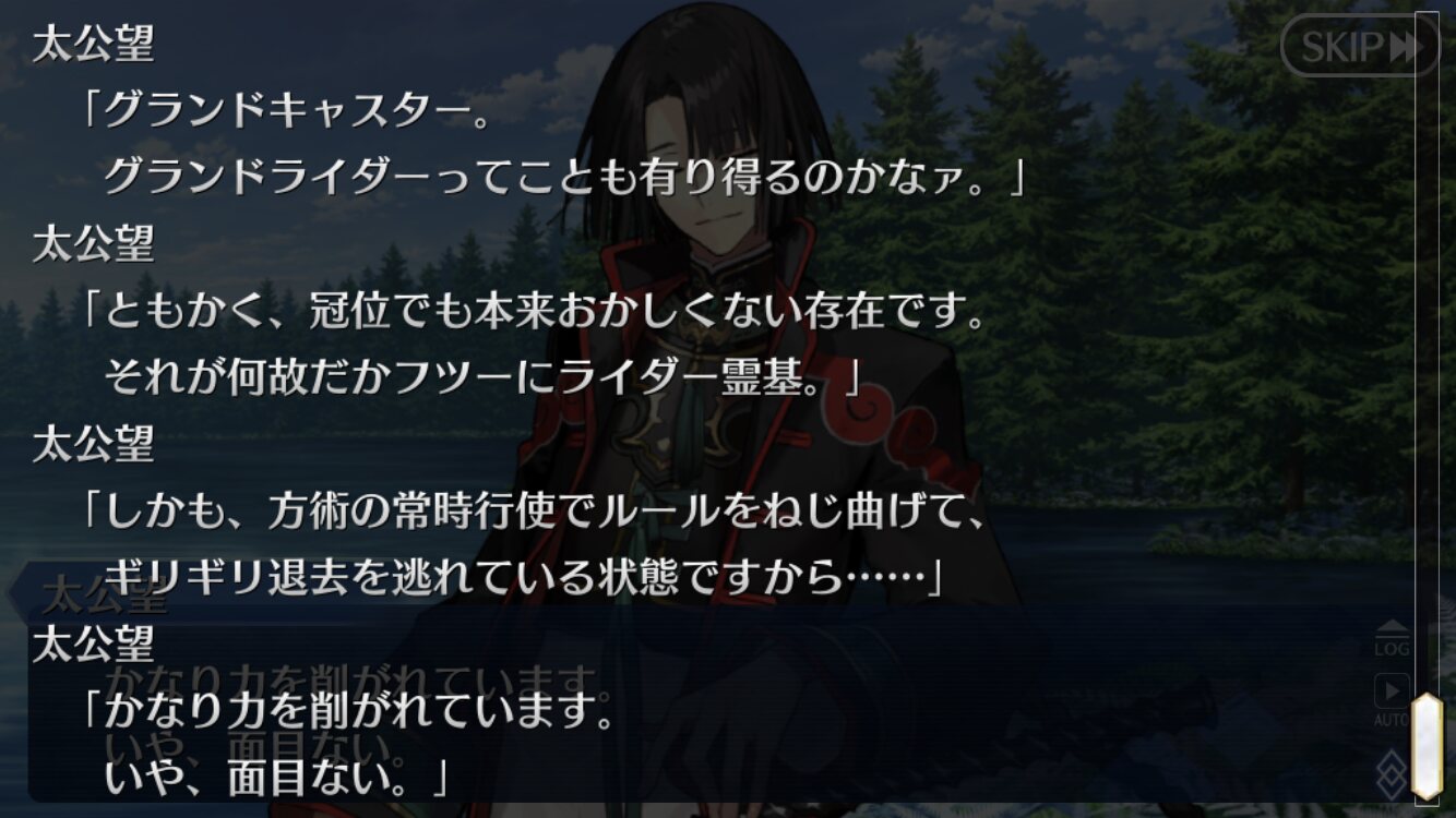 これやっぱパグ君連れてくるためにライダーにされたんじゃないのねえ…元々そんなに疑ってないけどフォウ君がマーリンの匂いを感じ取ってる辺り太公望はセーフ判定で良さそう