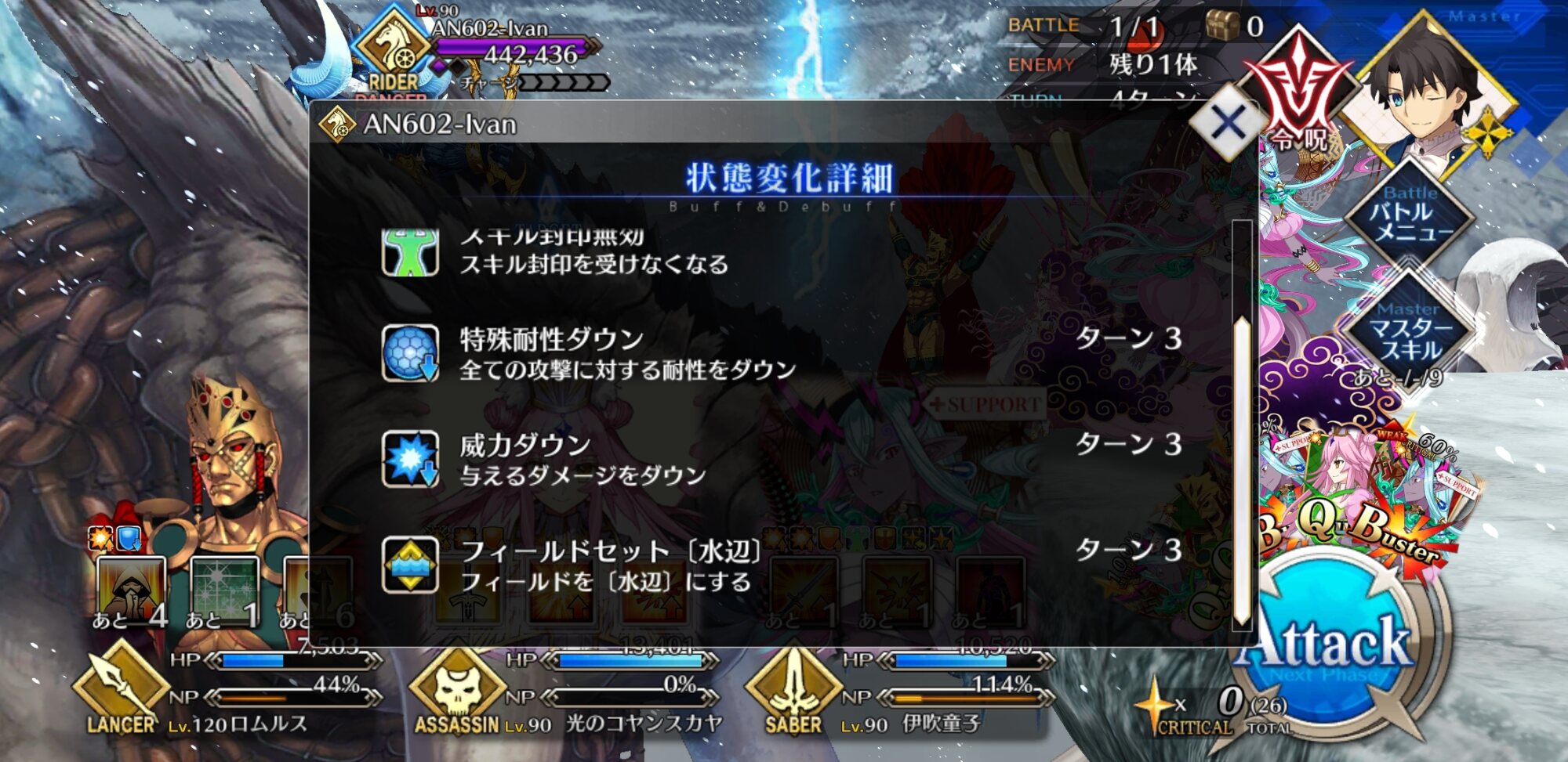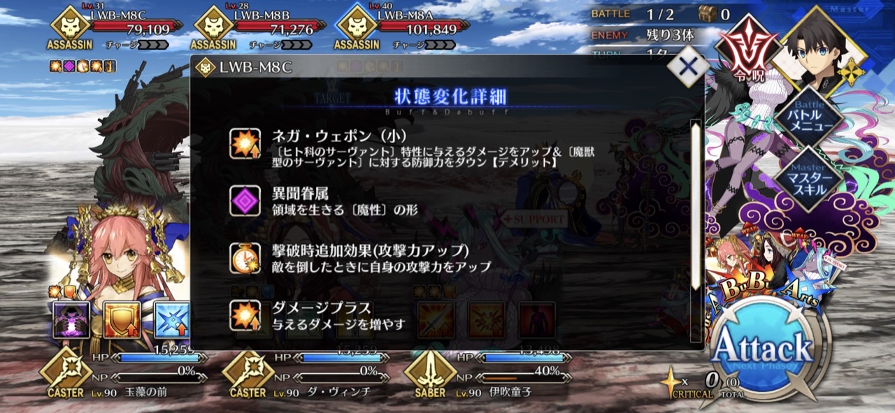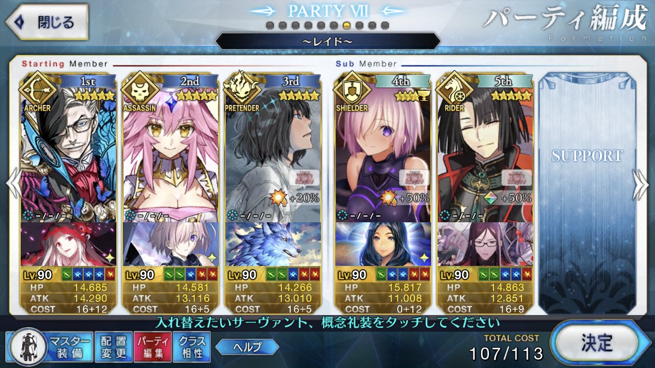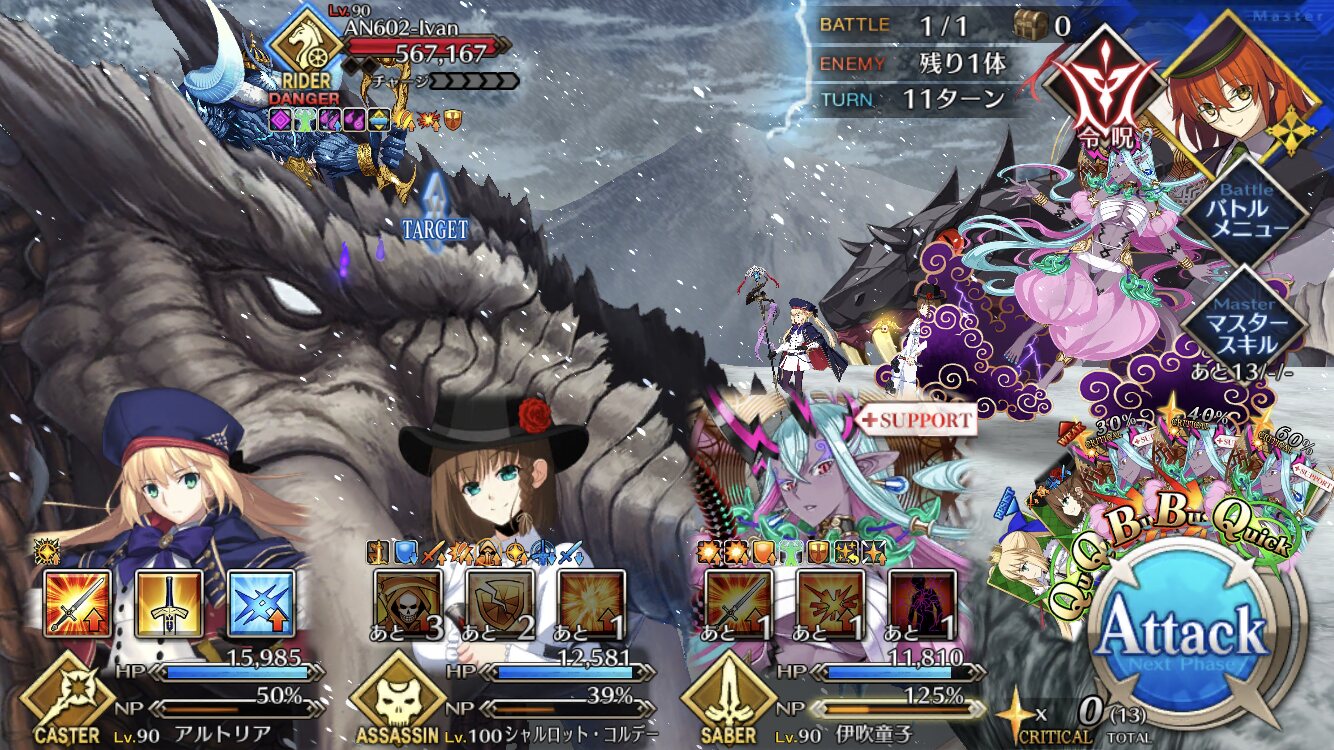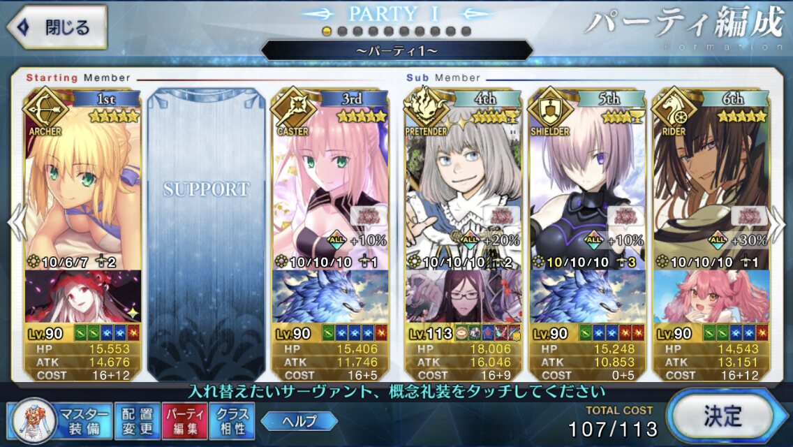 伊吹童子アタッカーにすると宝具もクリ殴りもかなりの火力出るから後はオルテナウスマシュのブラックバレル耐性下げて残りはサポートを編成すれば基本楽勝になるね>>85