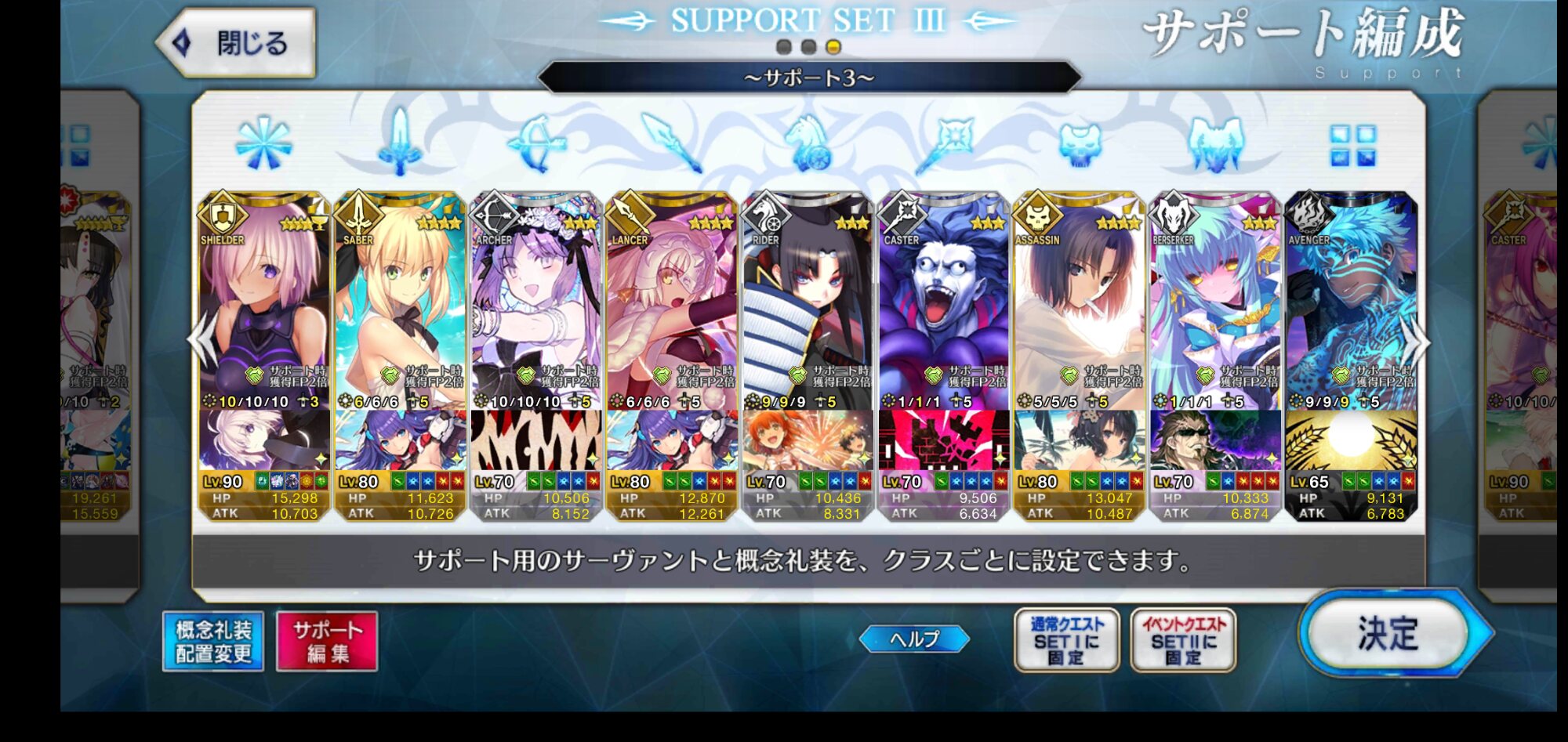 3.各クラス別アタッカーに投資。個別には挙げないけどアルトリアやファラオ、三蔵ちゃん辺りがオススメ。