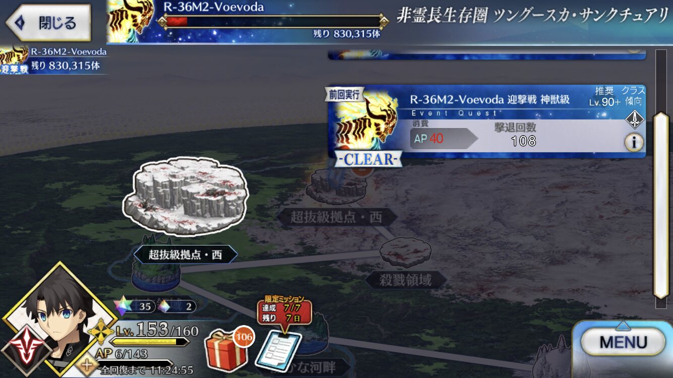 このイベント、復刻あるかなあ・・・レイドが4回予定されていて今までの2回が超抜級拠点の南と西だったからおそらく残りは北と東