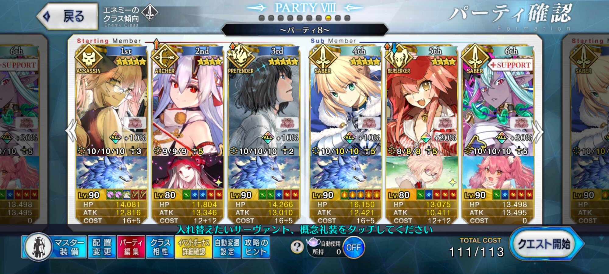 そんな何十分もかかる様な難易度じゃないし勝てないなら令呪なり石なりでコンテすればいいだけよ。>>885