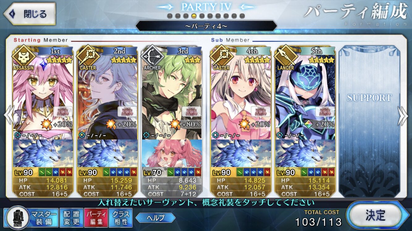 アーチャー相手だったらメリュ子オンステージだけど、後はどう火力をひねり出すか……イベント礼装凸ってないからどうにも火力に不安が残るなぁ昨日の雷帝も思ったけど