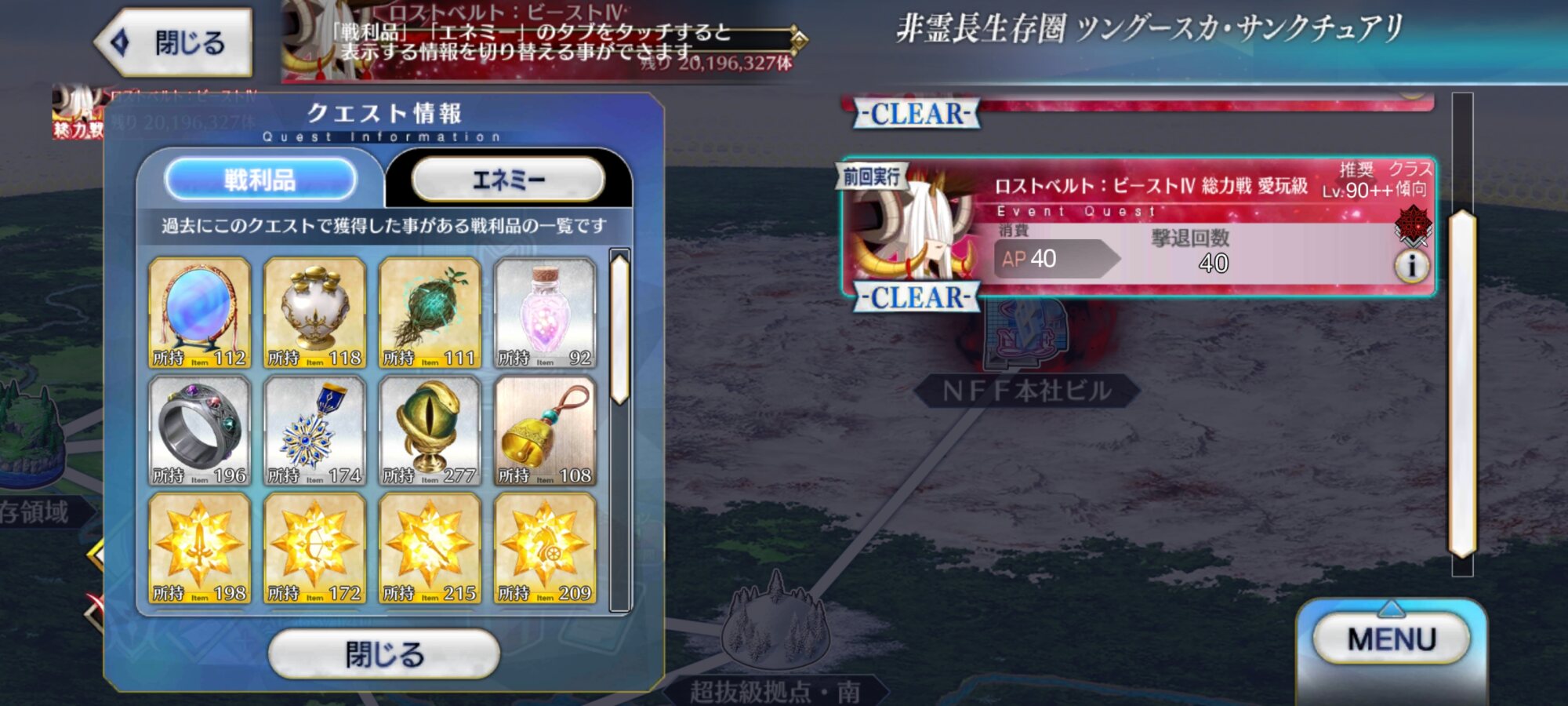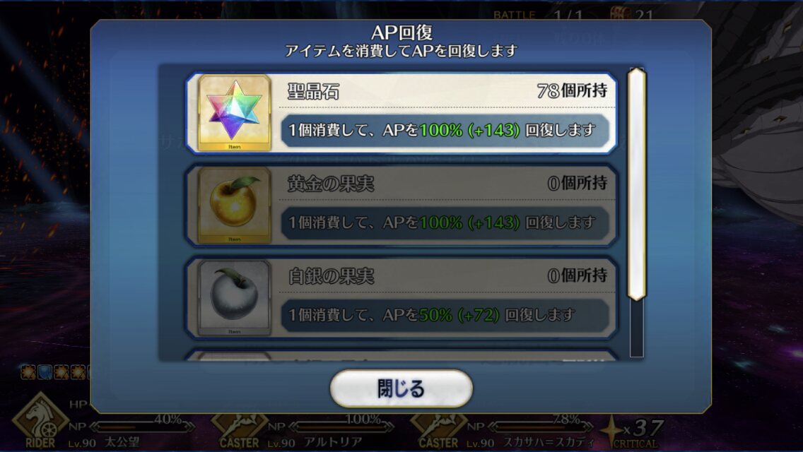 えっ、増えすぎでは?クリスマス種火で再臨済ませてスキルもそこそこに上げたぞ私!?今回のレイドで手に入るぐらいの絆を他のイベントで稼ぐのに必要な林檎の数を考えると、多分虹林檎もある程度囓った方が良いよねこれ?