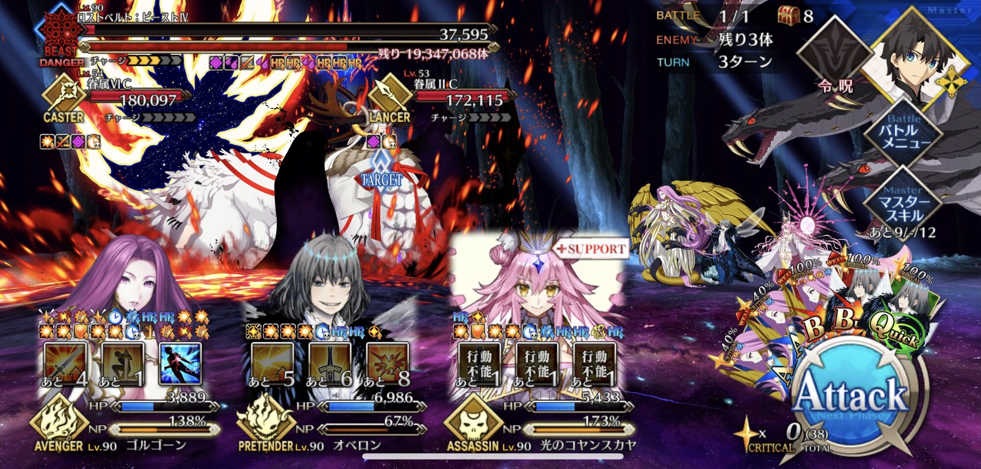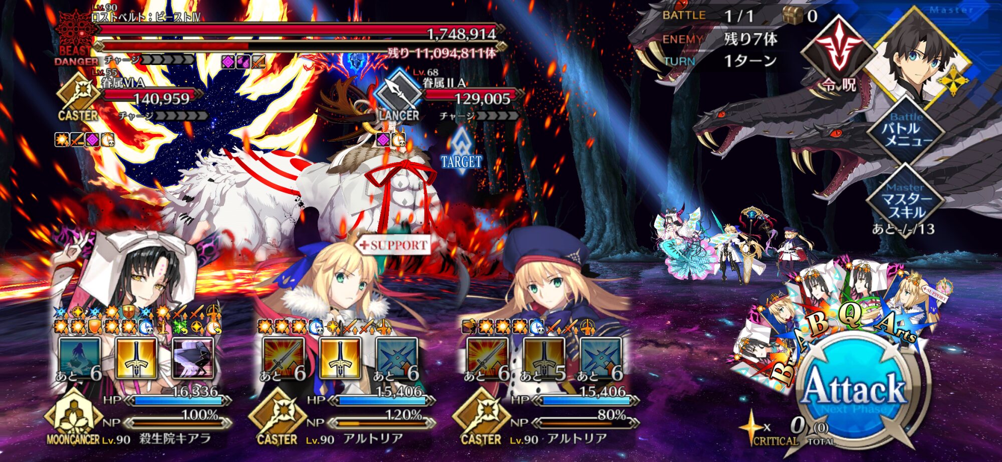 カード運良ければ3連射ならいけると思う。敵の攻撃のヒット数多いからNPも割かしたまるし。