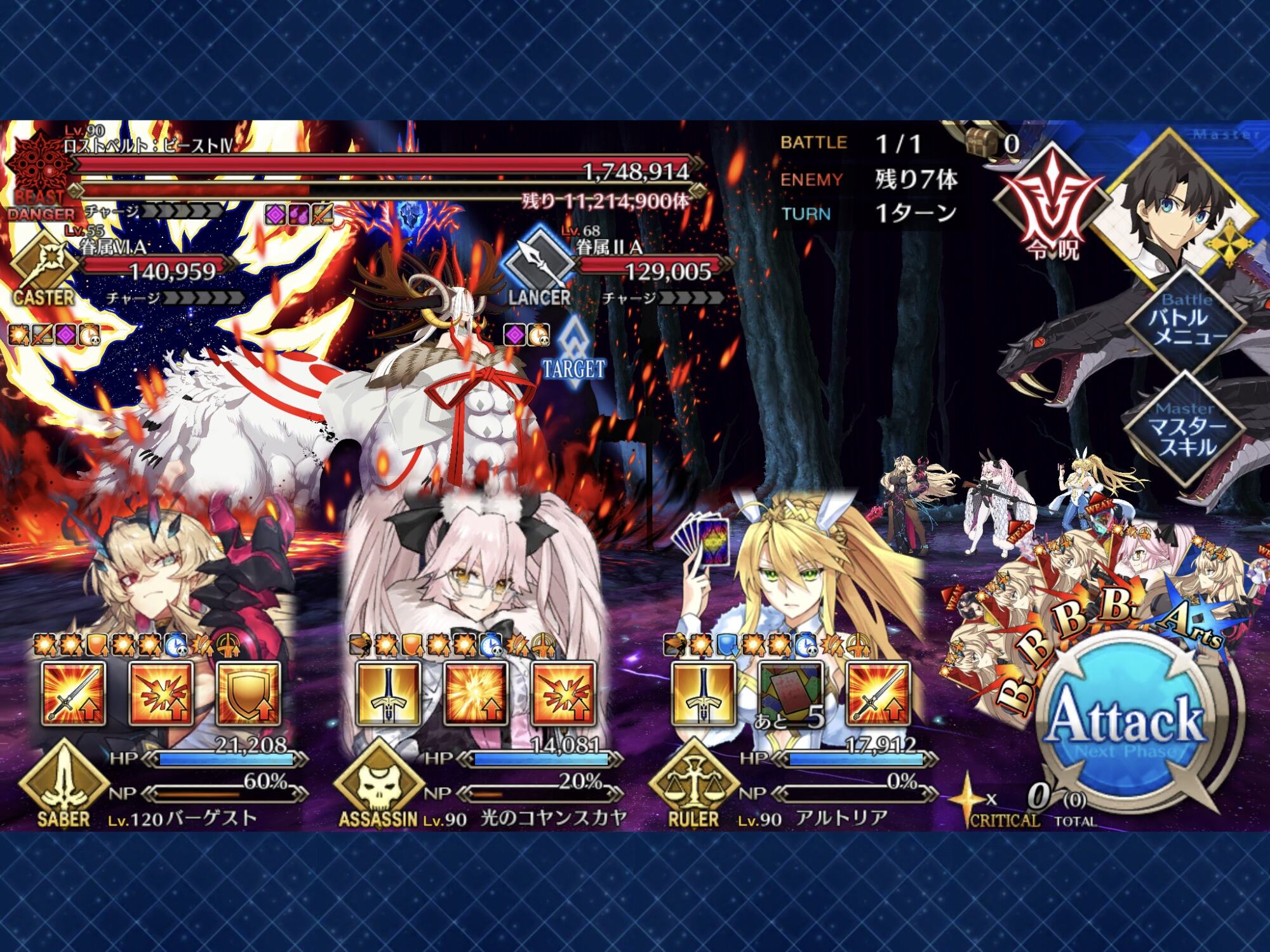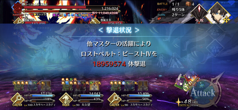 宝具タックルでビースト楽々狩れるからありがたい。そういえば、今回の冒頭で鯖6騎の戦闘を考えていたぽいね。