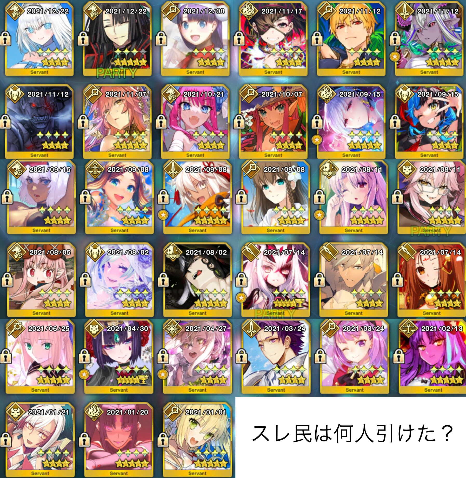 アペンドの2開けたいけどできれば101以上にも上げたいから容易に開けない……昨日まで寅年でジャガーマンジャガーマンて話してたら夢の中でいつものあの顔した景虎さんにじっと見られてたんだ