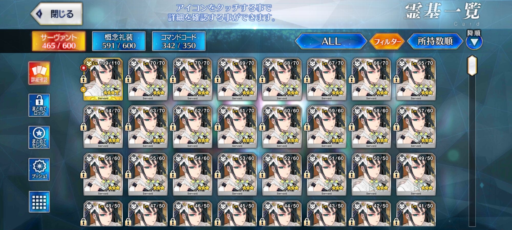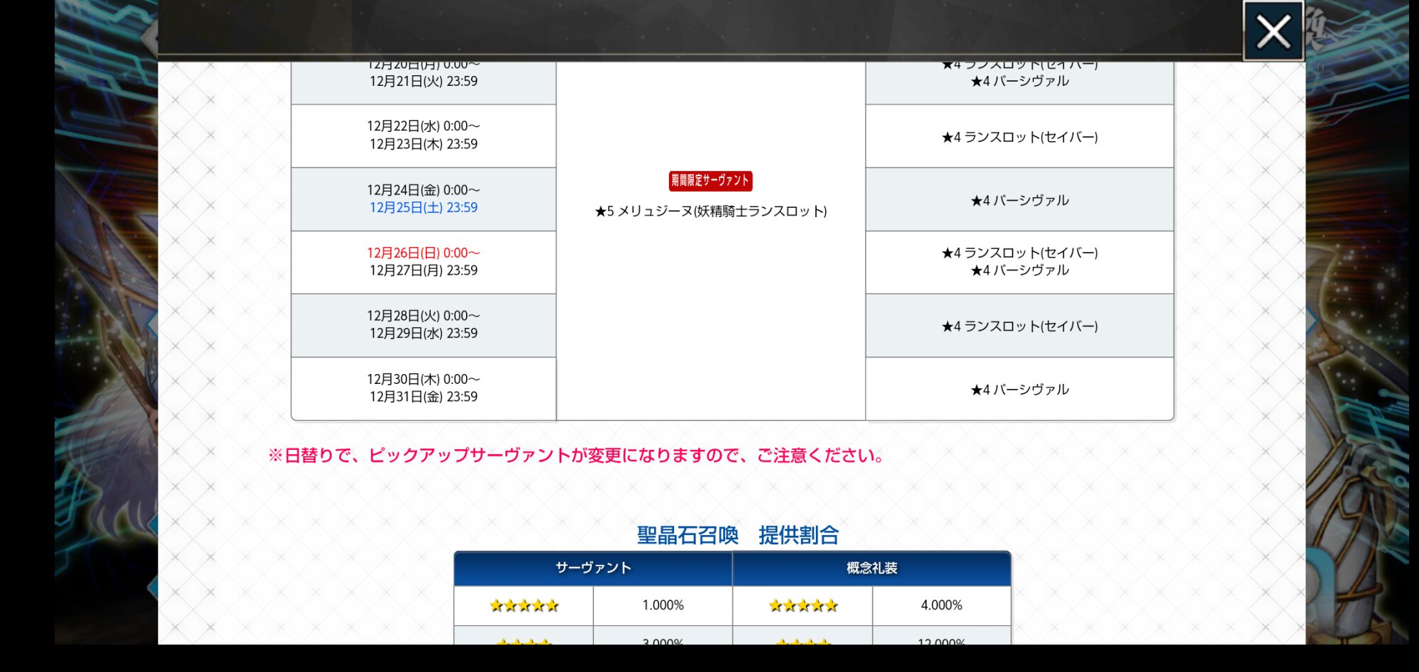 別のと勘違いしてたかな……あれ、スター集中スキルを使用したときのスター集中度ランキング、ランスロットが2位になってる……