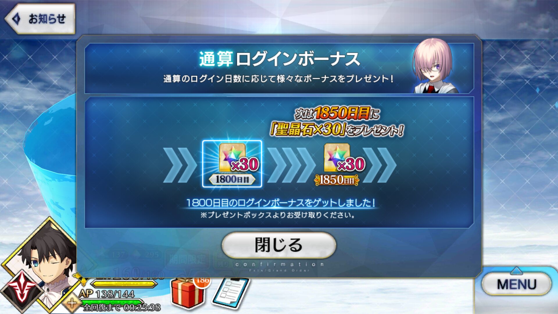 あ、そういえば聞いた話だと言峰綺礼って方がどうも誕生日らしいですね?おめでとうございます。どなたかは僕は存じ上げませんが。メリュが1000取るのこれで4,5回くらいは見たな。人気の高さが伺える