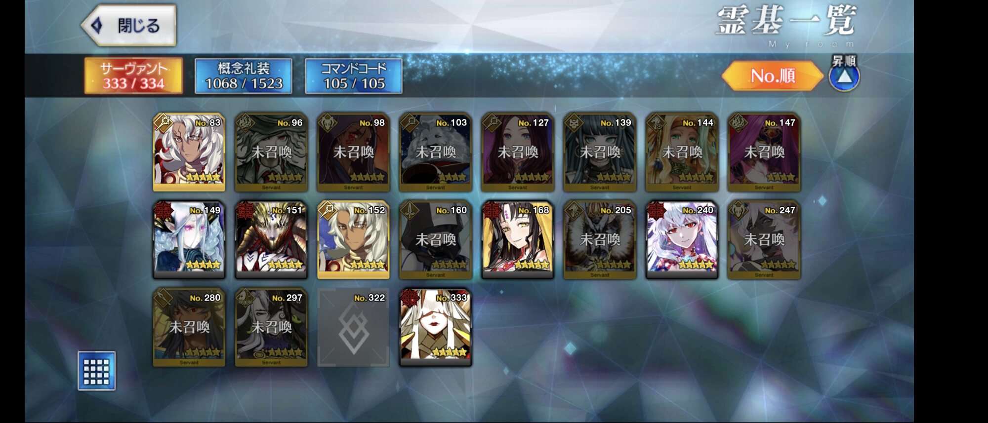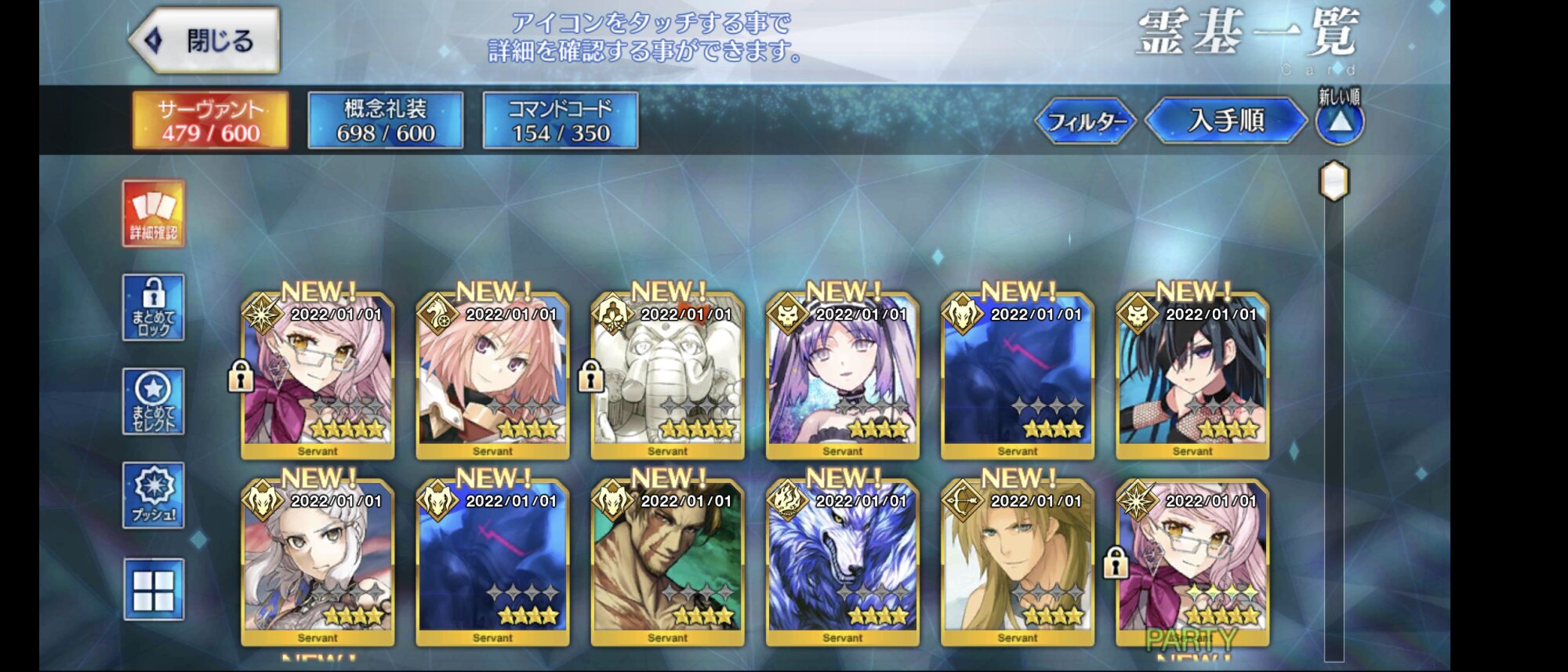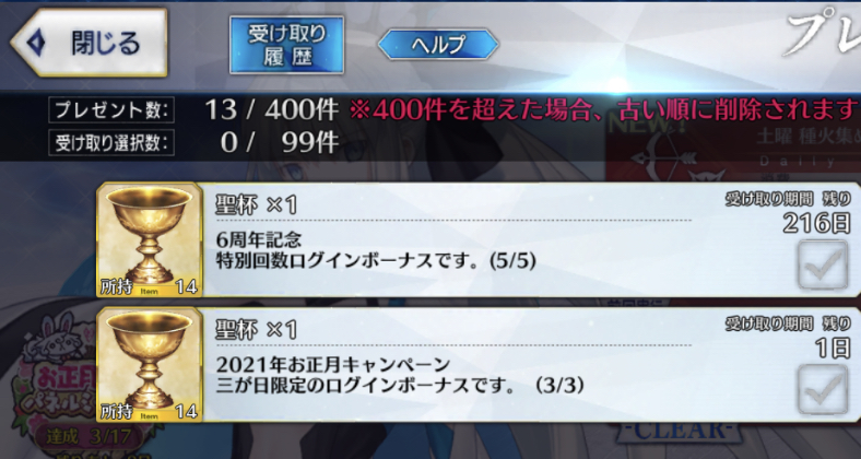 でもそろそろちょっとは石使っといた方がいいのかなぁ…終わりも見えていそうだしまずは今年の新規イベントでどのマス(?)が埋まるかが楽しみ