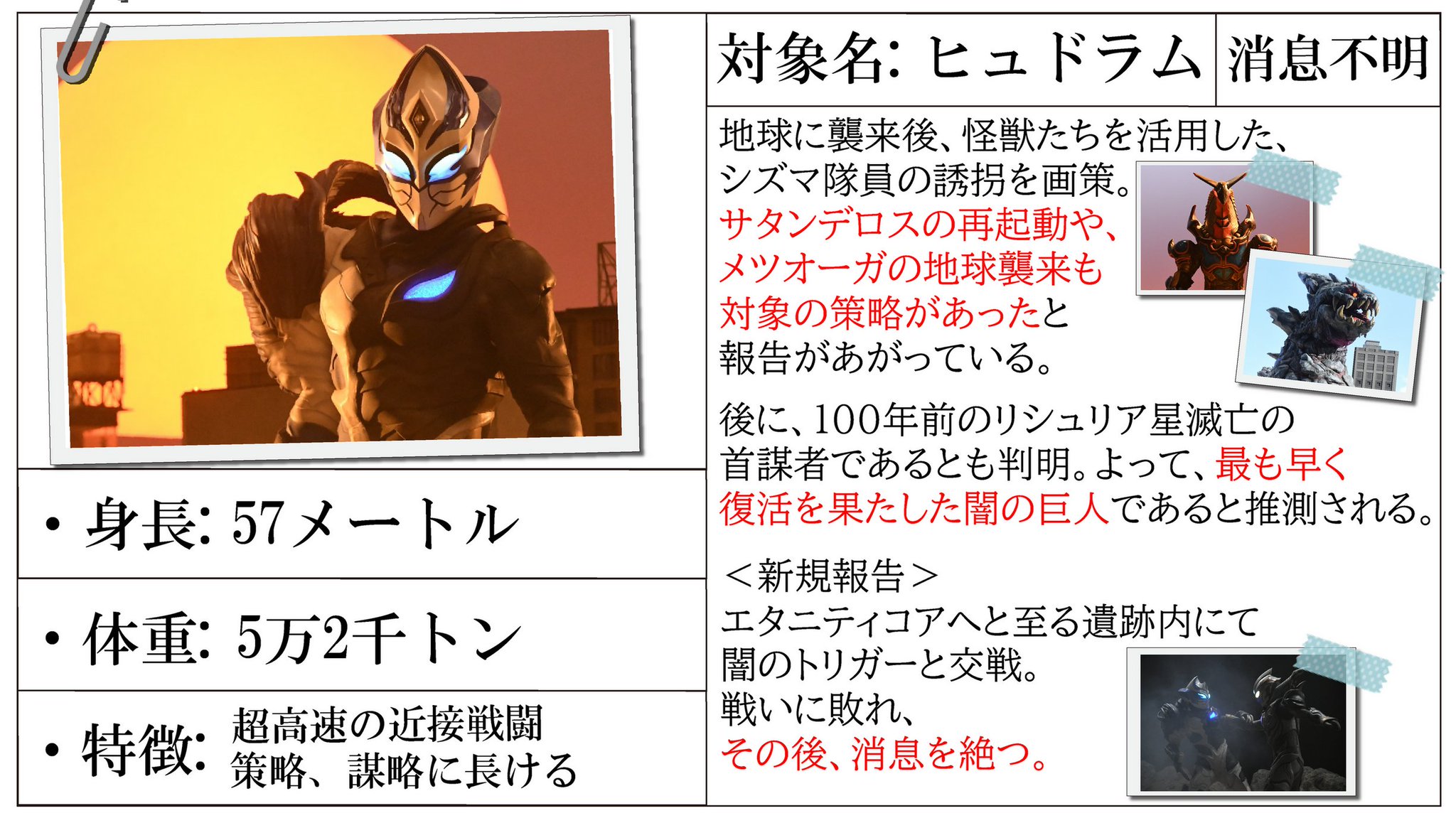 ヒュドラムと真っ向勝負で互角扱いみたいな時もあったし、闇の巨人とはタイマンだと上(各々の得意分野では互角)で複数相手だとキツイ ぐらいが丁度よかったかもなーとか思わなくもない二週間ぶりのニチアサだー!