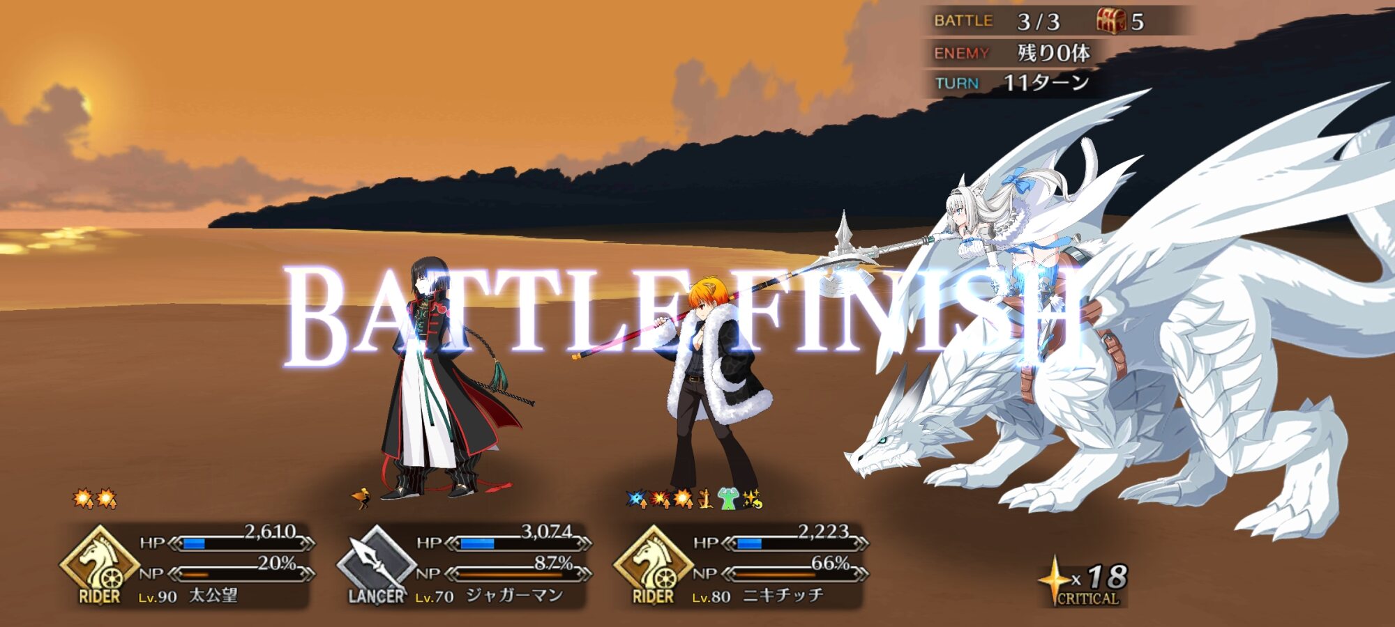 ライネスは宝具効果にもうちょい色付くと良いなぁバルバトス特攻積めばキャスニキでワンパンいけるかな