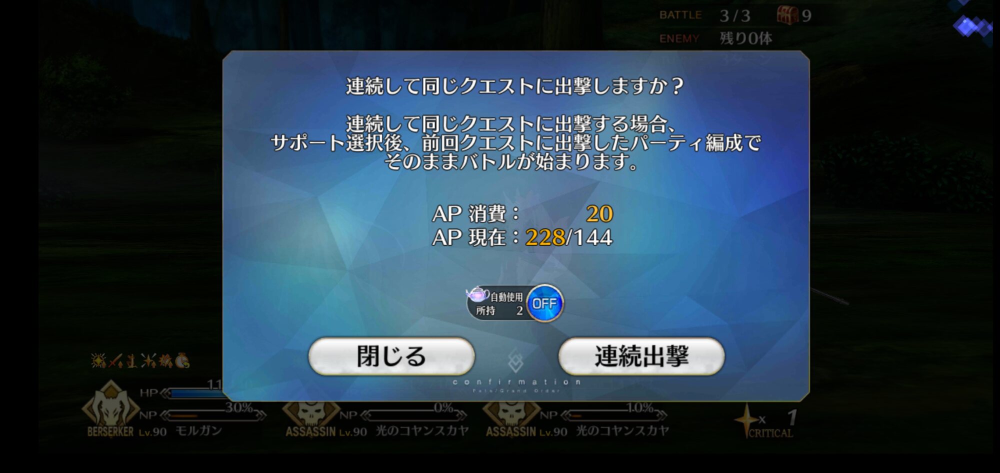 ひたすら種火稼ぎ。せっかくの大成功2倍チャンス、逃す手は無し!>>956