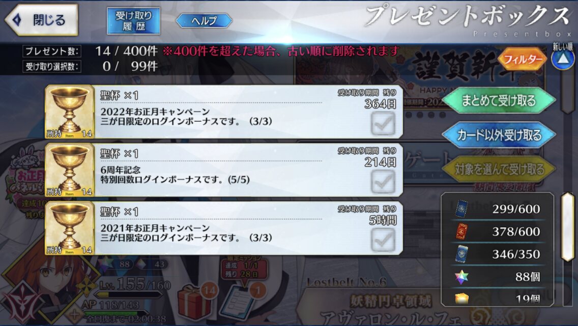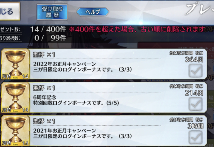 素直にモニュメント拾ってくるか去年配布された聖晶石と呼符が900連くらいできる量だったと言うことは、これからは少なくとも星5が3人手に入る計算になるのか