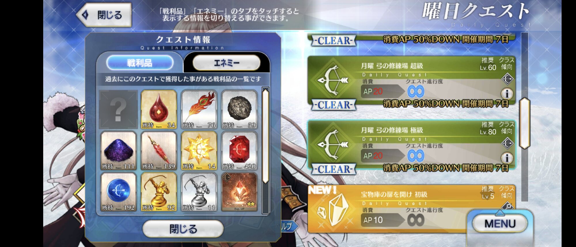 ピースとかは次のアサシン修練場で貯めるのが良いかもねえ>>65