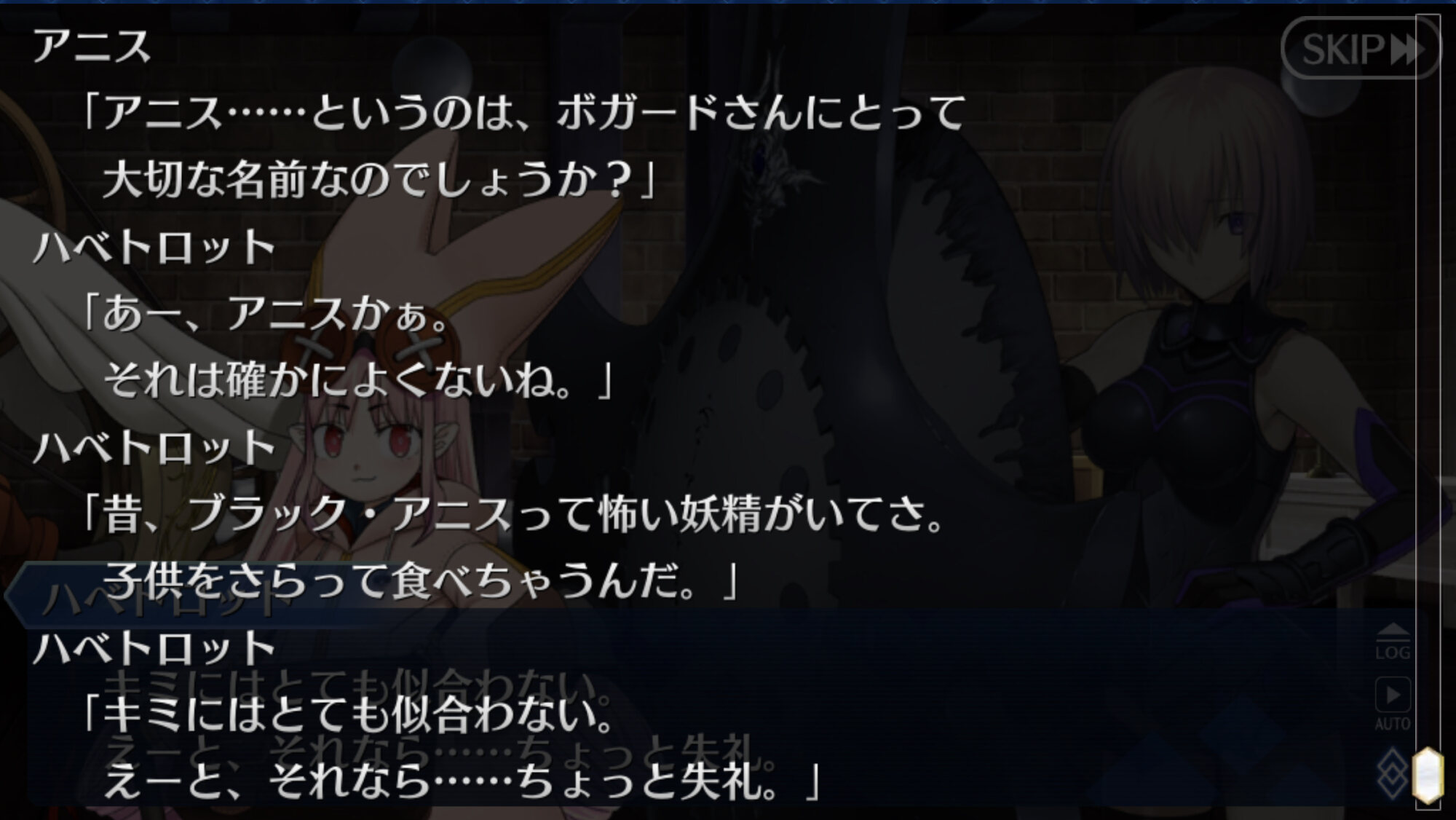 しっかりなされい!(銛で刺したあとカレンダーごとに薬を貼り付けて去る音)名無しの森で思い出したけど、マシュの「アニス」って名前は何か元ネタとか参考とか意味とかあるのかな