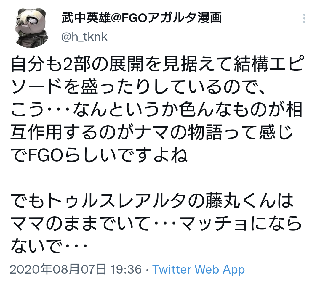 転載出来ないけどこの方のぐだはとてもシンクロ率が高くて好きであります