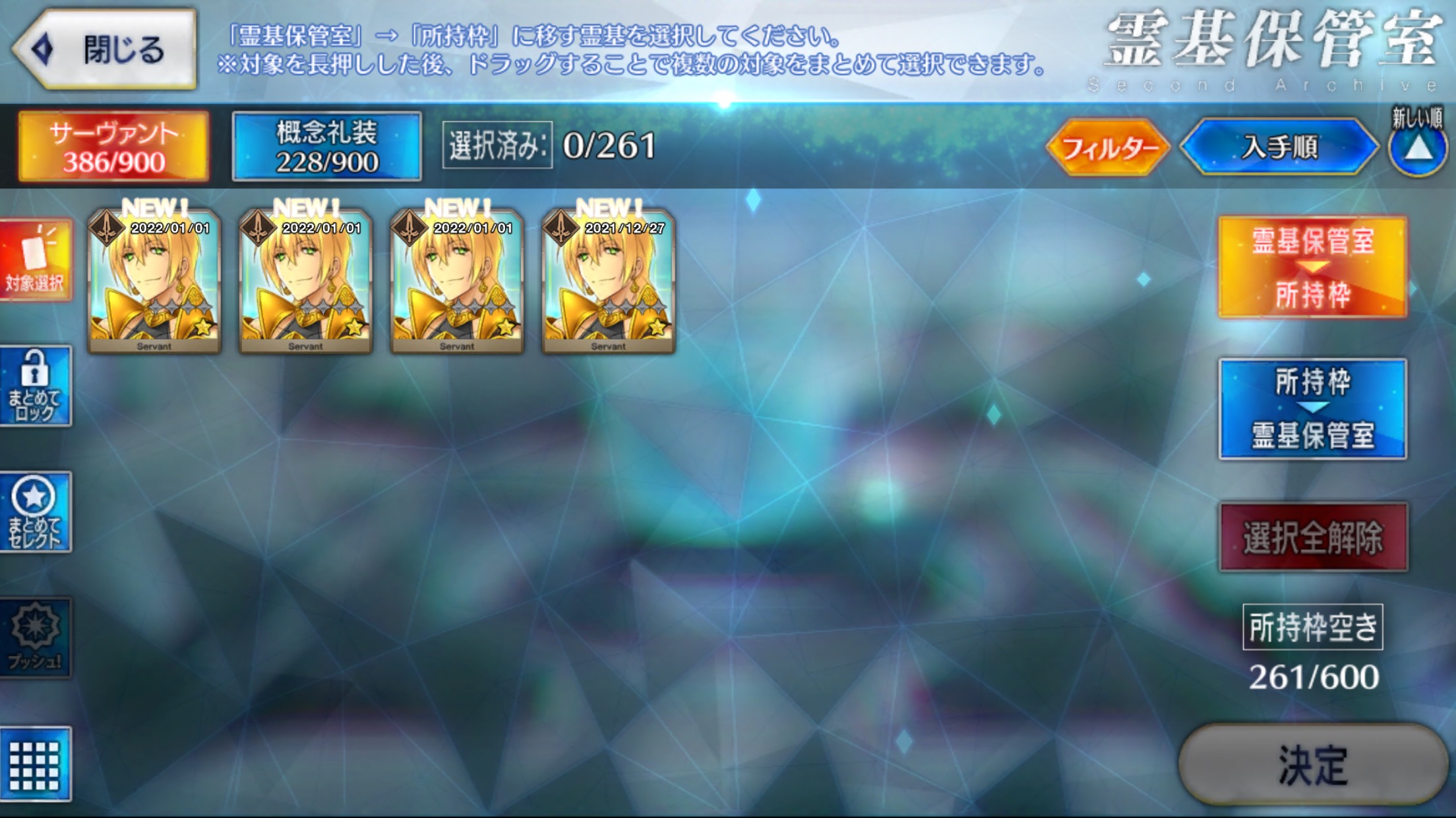 充分では?新しい鯖を迎え入れれば、種火は余らぬのだがいかんせん運が滅茶苦茶絡む