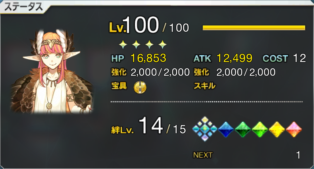 かわいいけど大分ケモ度の高い見た目ですよね……成長したらもっと大きくなるのかな?全員スキルマにするためには80億QPくらい必要だなあ