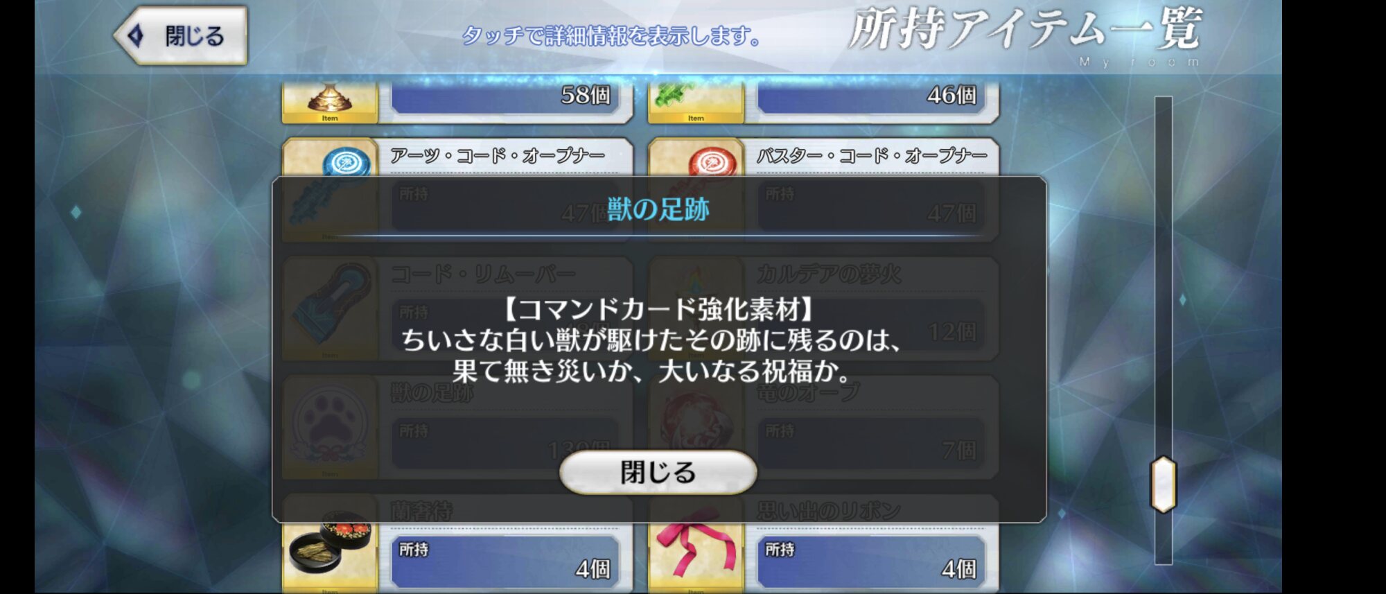 うちも再臨が止まってる最大の理由だもん塵で育成が止まることは無くなったけど、今は証と牙が足りない