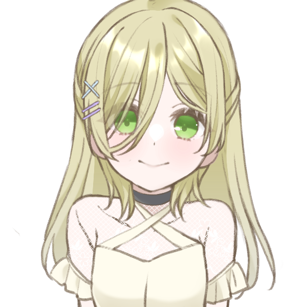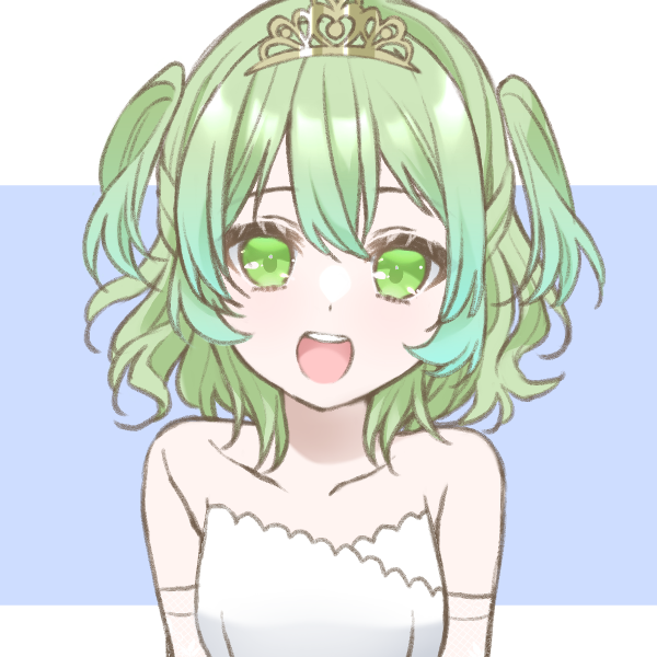 【肌色】白 【髪色】緑 【瞳色】朱色と金のグラデーション