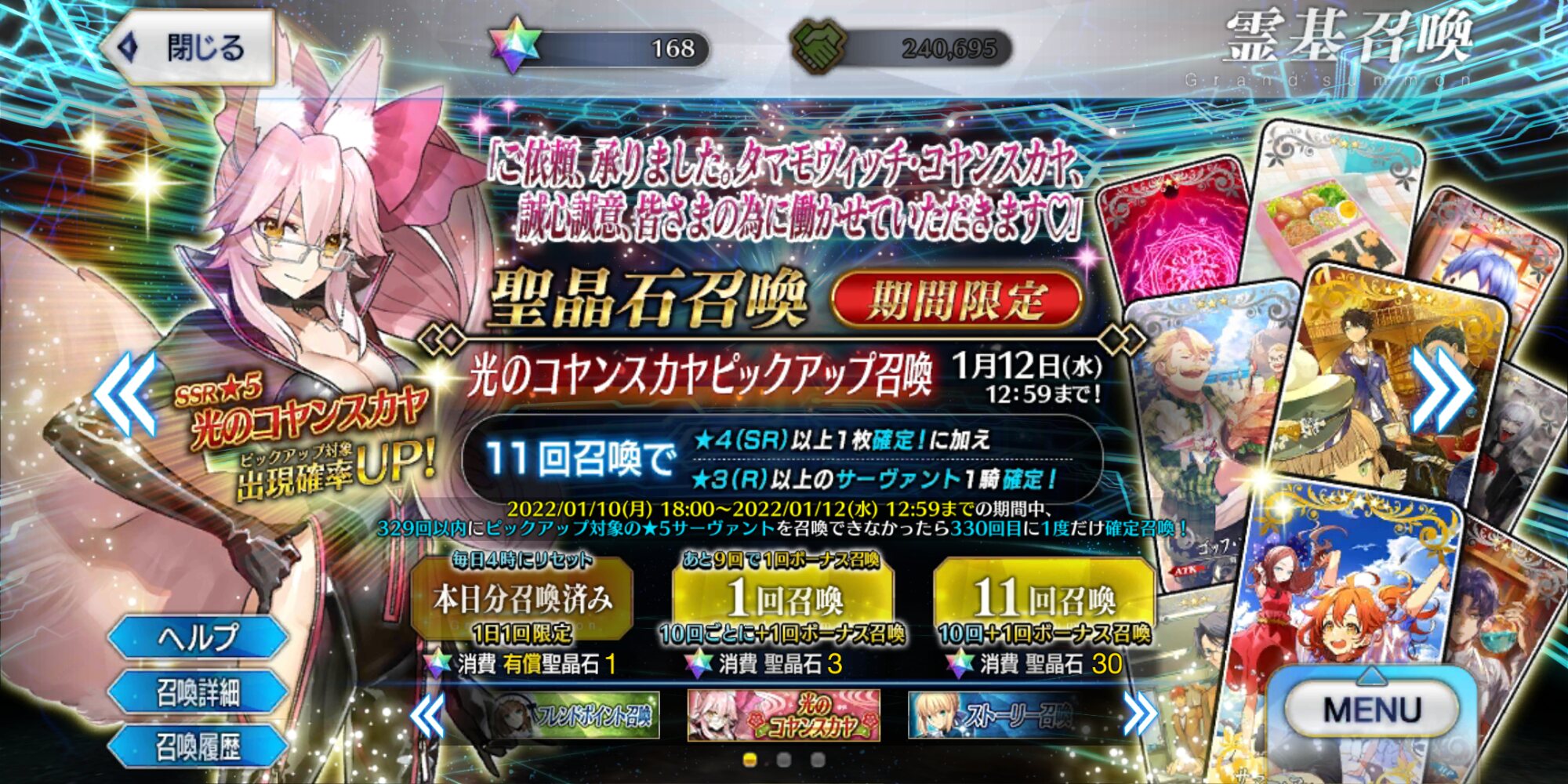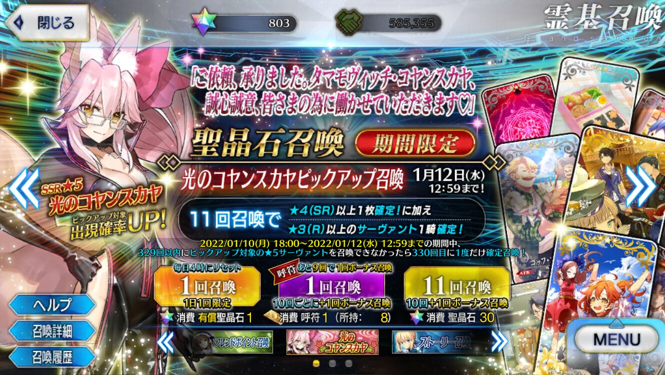 七章決戦あたりになって「ここを越えてもらいませんと契約に不都合が出てしまいますので。まあ、特別サービスということで♡」って光コヤン霊基が助けてくれるのをちょっと期待してる>>72