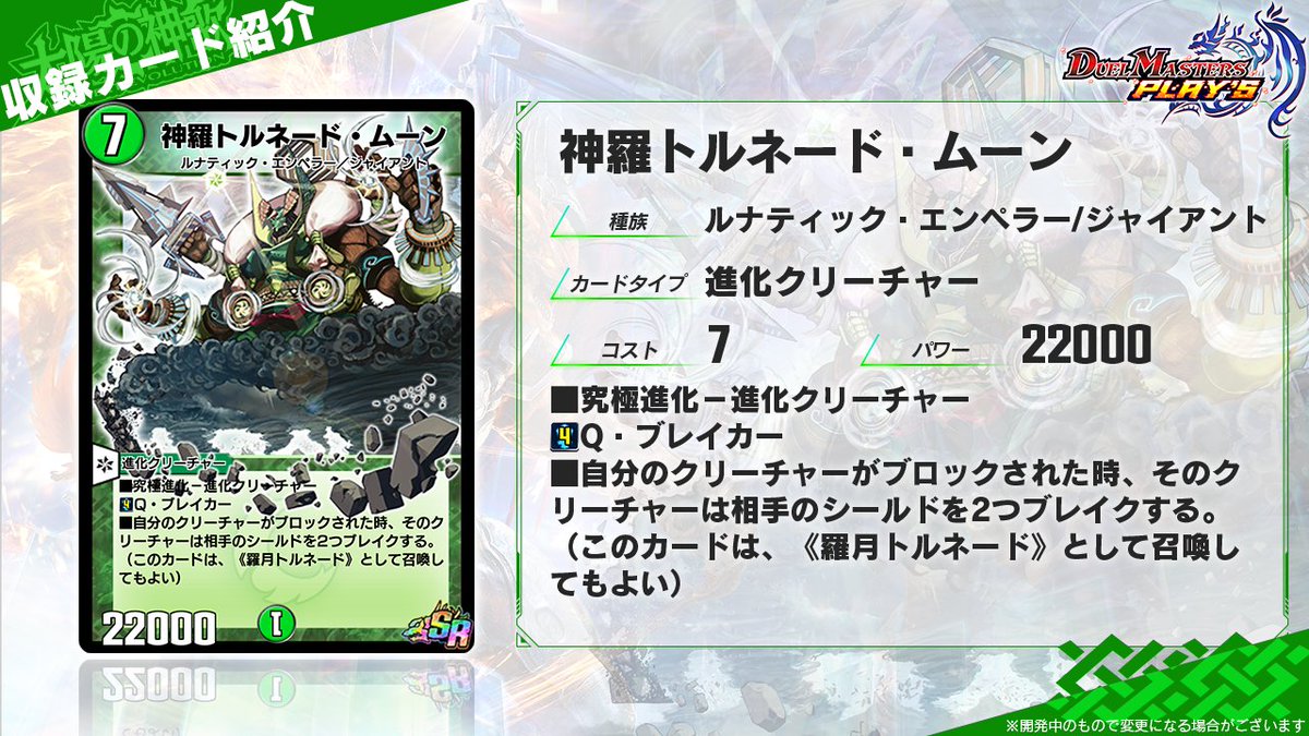 確かにこの流れ自体が青銅とトルネードムーンが来れば出来るからキーカード2枚、パワー5000タップするの嫌だけど1+4枚で7マナ目に相手のシールド0に出来るのは確かに強そう