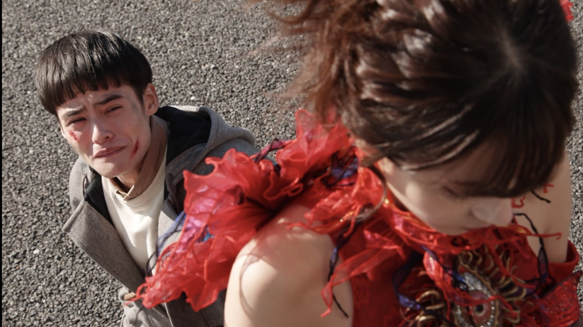 霜が付いた手足、CGじゃなくマジで燃えてる拳