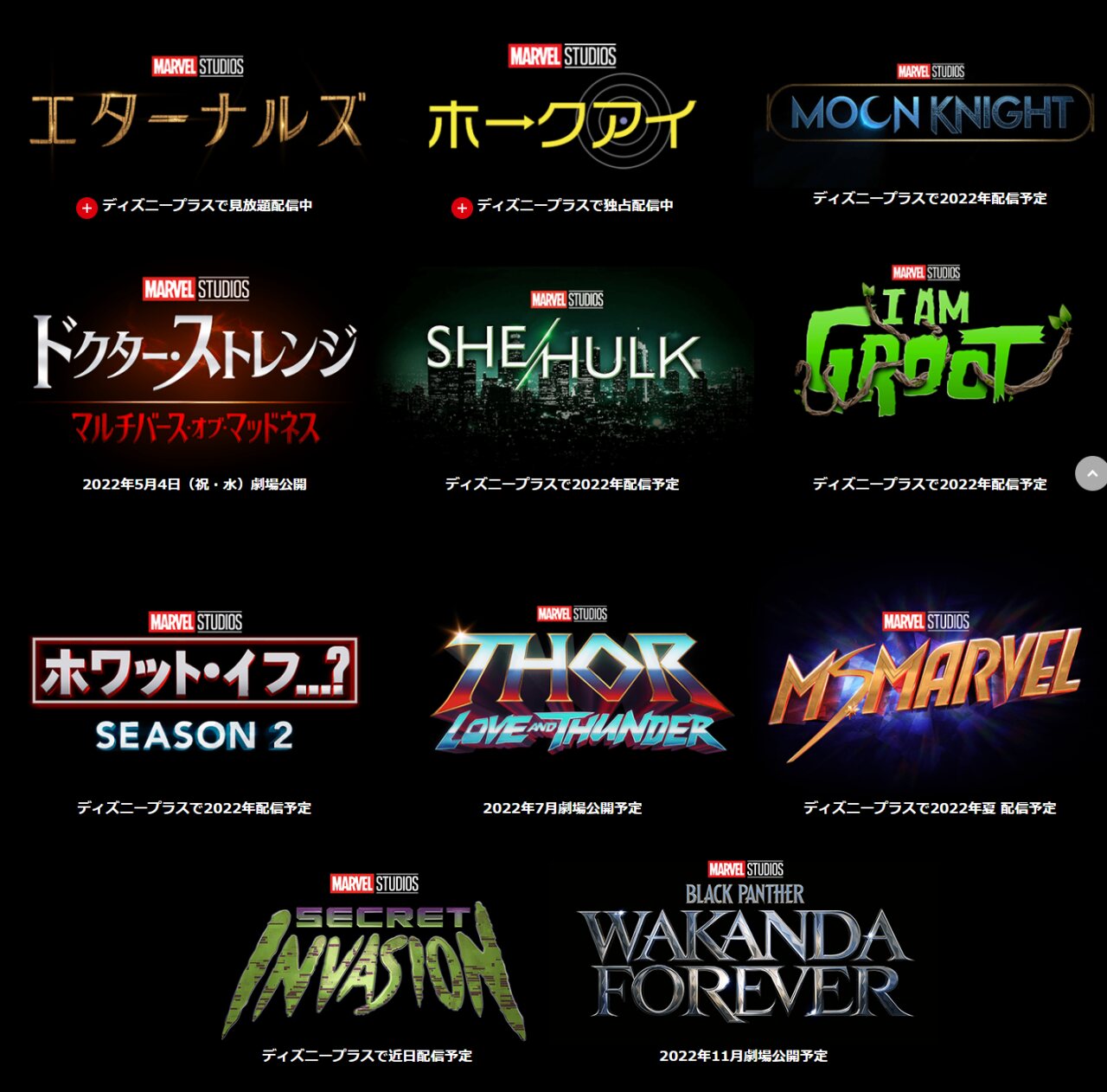 左上から右に行くのが公開順みたいだけど、シークレットインベージョンだけ近日公開なの紛らわしいよな>>967