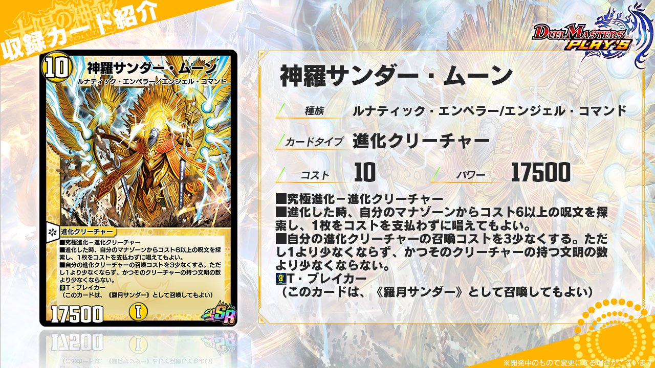 今回の件で間七総理の地位が危うくなり入れ替わるように、長が「色々あって権力とは縁を切った」と言ったから、てっきり極道の政治家でてくるかと思ってたが……サンダームーン、進化クリーチャーの計量を持ってきたな……流石に10マナは重かった……