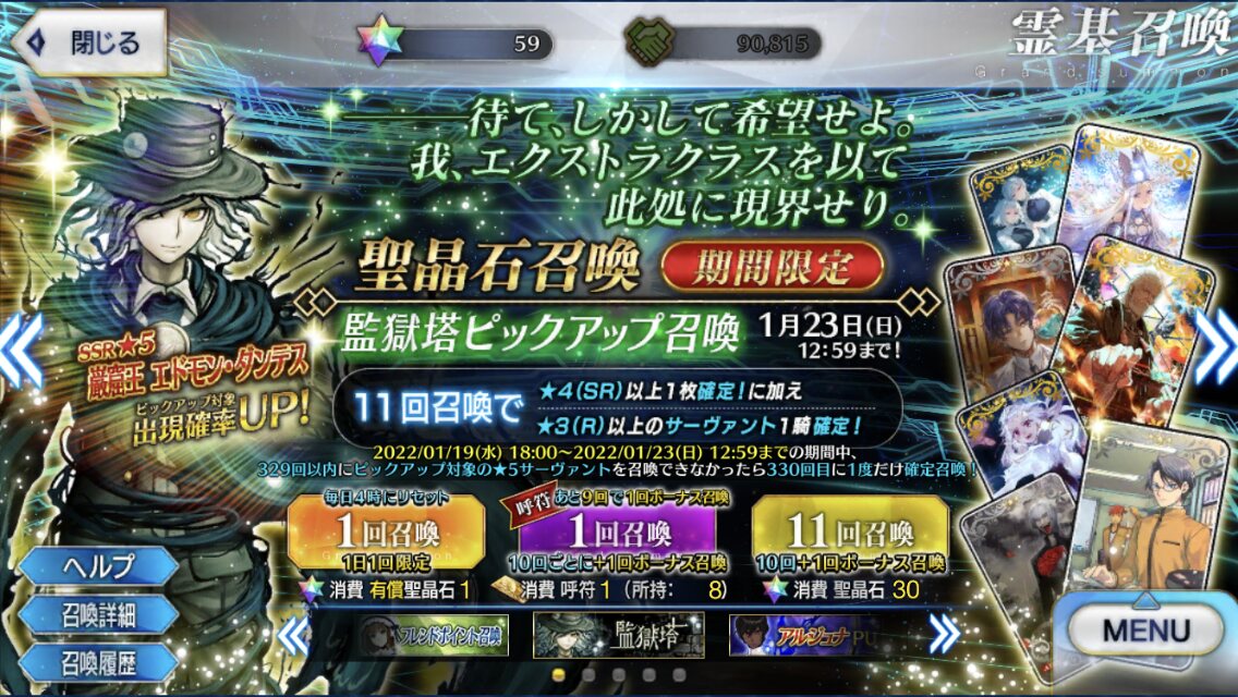 YouTubehttps://m.youtube.com/watch?v=gd3EBJzDs40今回のガチャでようやく我がデアに来てくれた巌窟王の一言