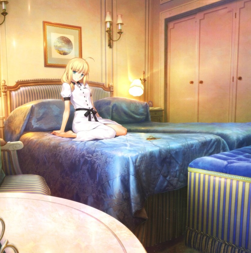 画像みたいに高級なホテルで一夜を過ごして、朝になっても裸でベッドから出ずにイチャイチャ…というのでもいいし安宿の擦り切れた寝床の上でアルトリアの脚を開かせる士郎というのもいいと思う