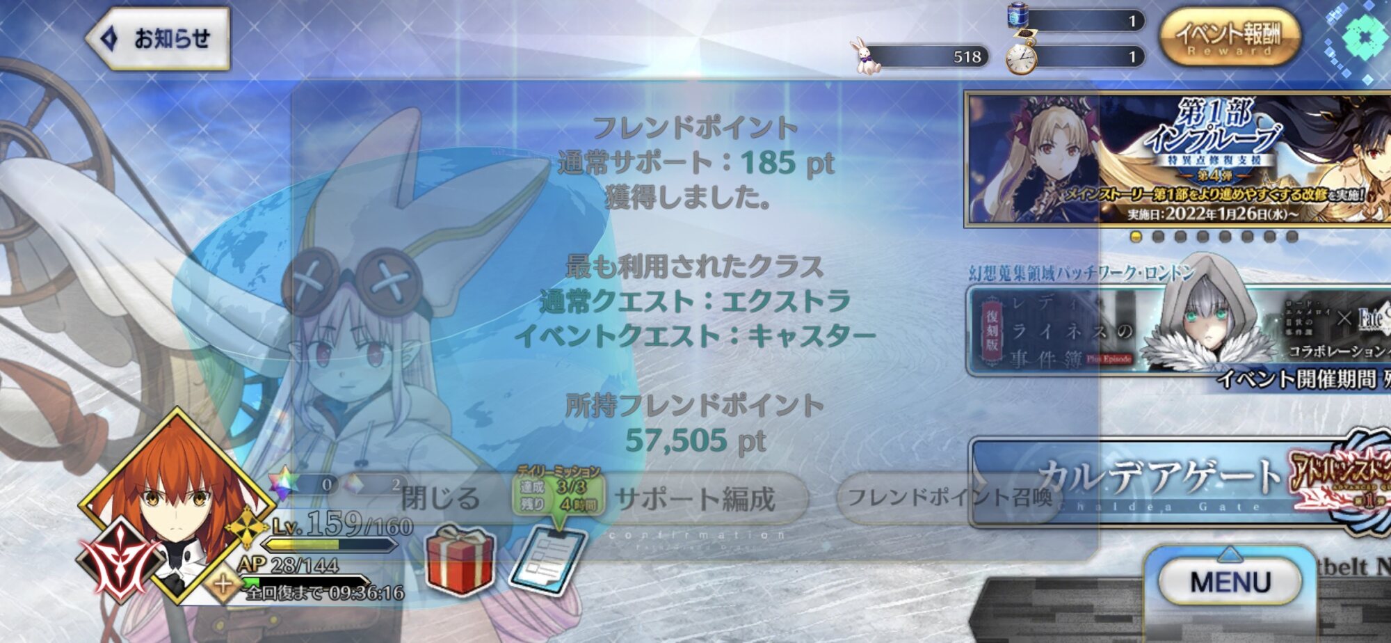 判断が遅いオヨ?イベントアイテムほぼほぼ交換し尽くしたな。アペンドのために種火周回に切り替えるか。