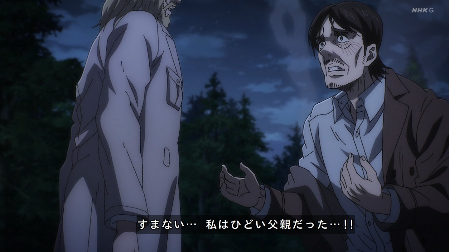 やり終えた後のグリシャの慟哭が、とても痛ましい・・・進撃、マジで綺麗に組み上げられた物語をぶっ壊すのが上手すぎる。今まで積み上がってきたグリシャのイメージとかジークの思いとか諸々全部を一話で破壊してる……