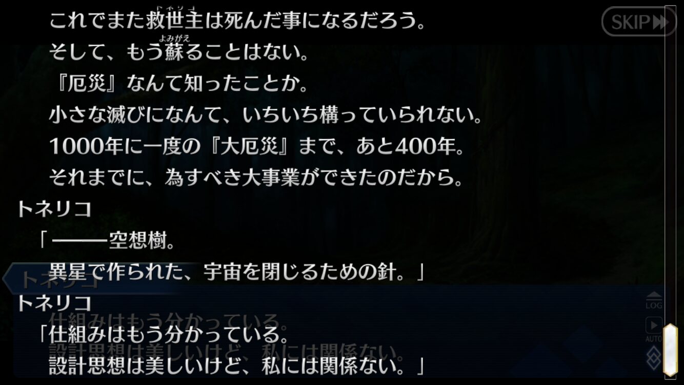 異星の神がカルデアス(推定)として、演算能力を、テクスチャを縫い付ける力を持った最果ての塔的な何かにくっ付けたものが空想樹だとしたら、納得は出来るような気もするなぁ